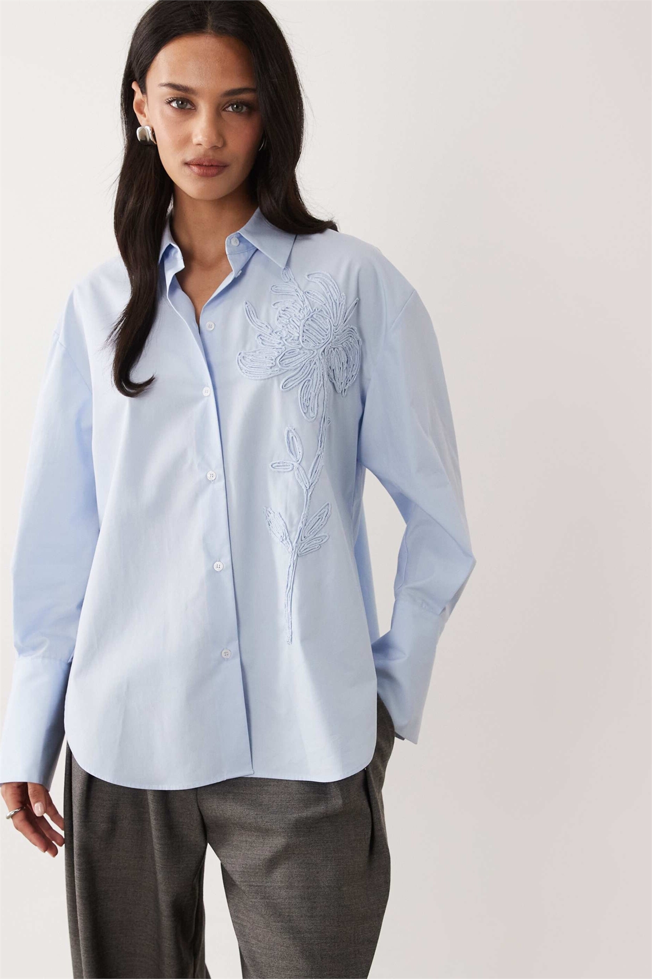 Классическая рубашка из смешанной ткани с хлопком и вышивкой