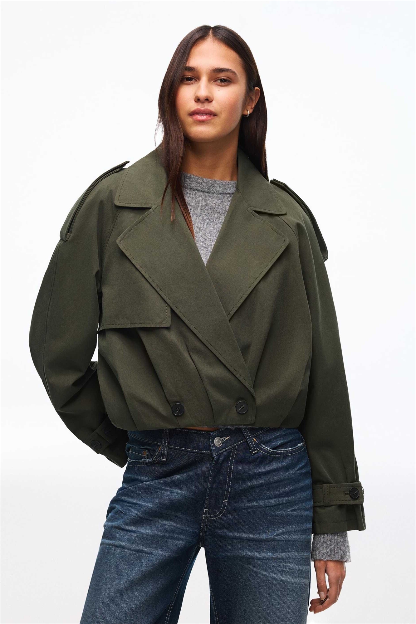 Короткая куртка-транчека с балонными рукавами