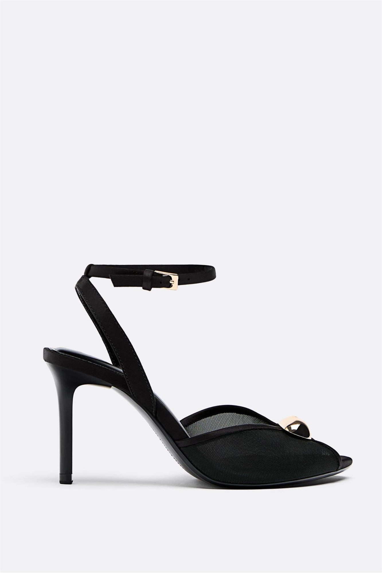 Сандалии на каблуке из сетчатого материала с металлическими элементами