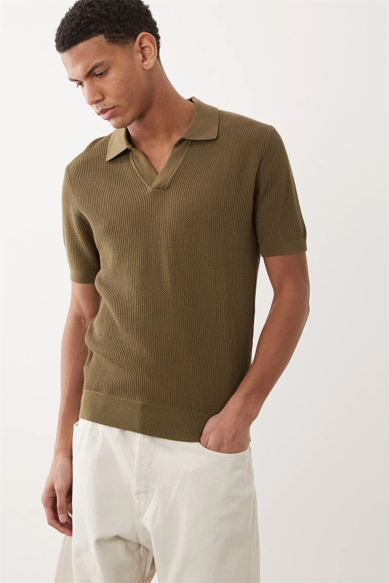 Свитер с воротником-ревер и короткими рукавами из 100% хлопка