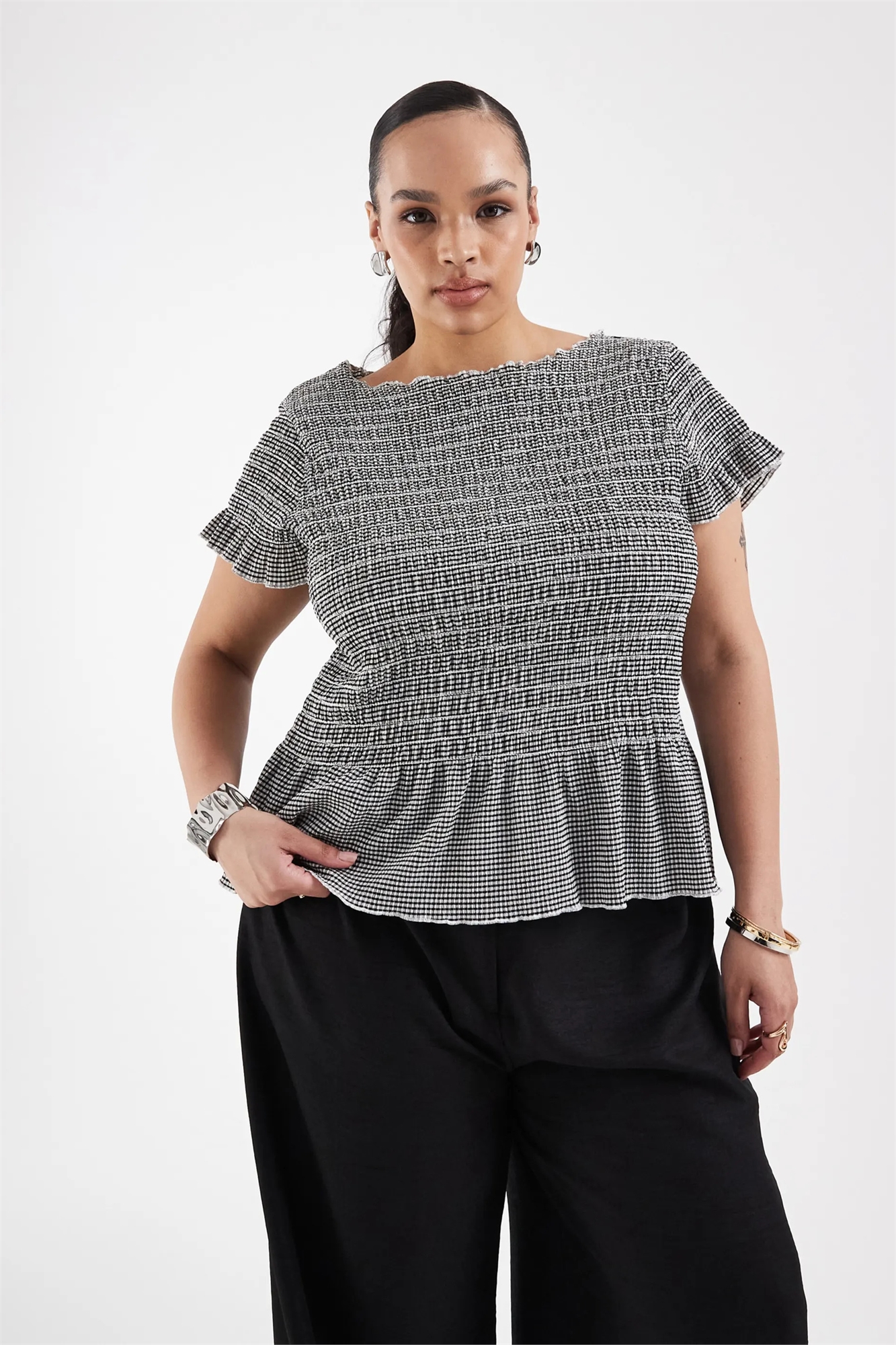 Топ с рюшами и лодочным вырезом