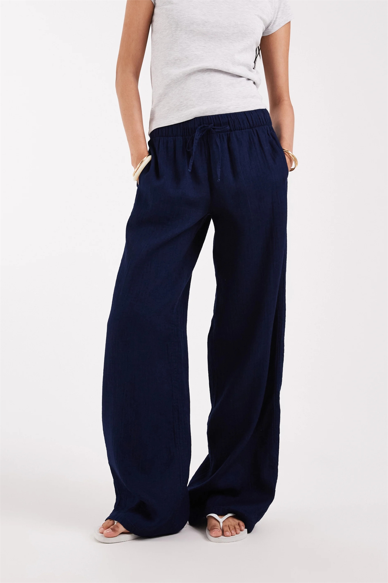 Брюки с широкими брючинами из ткани «сирсакер»