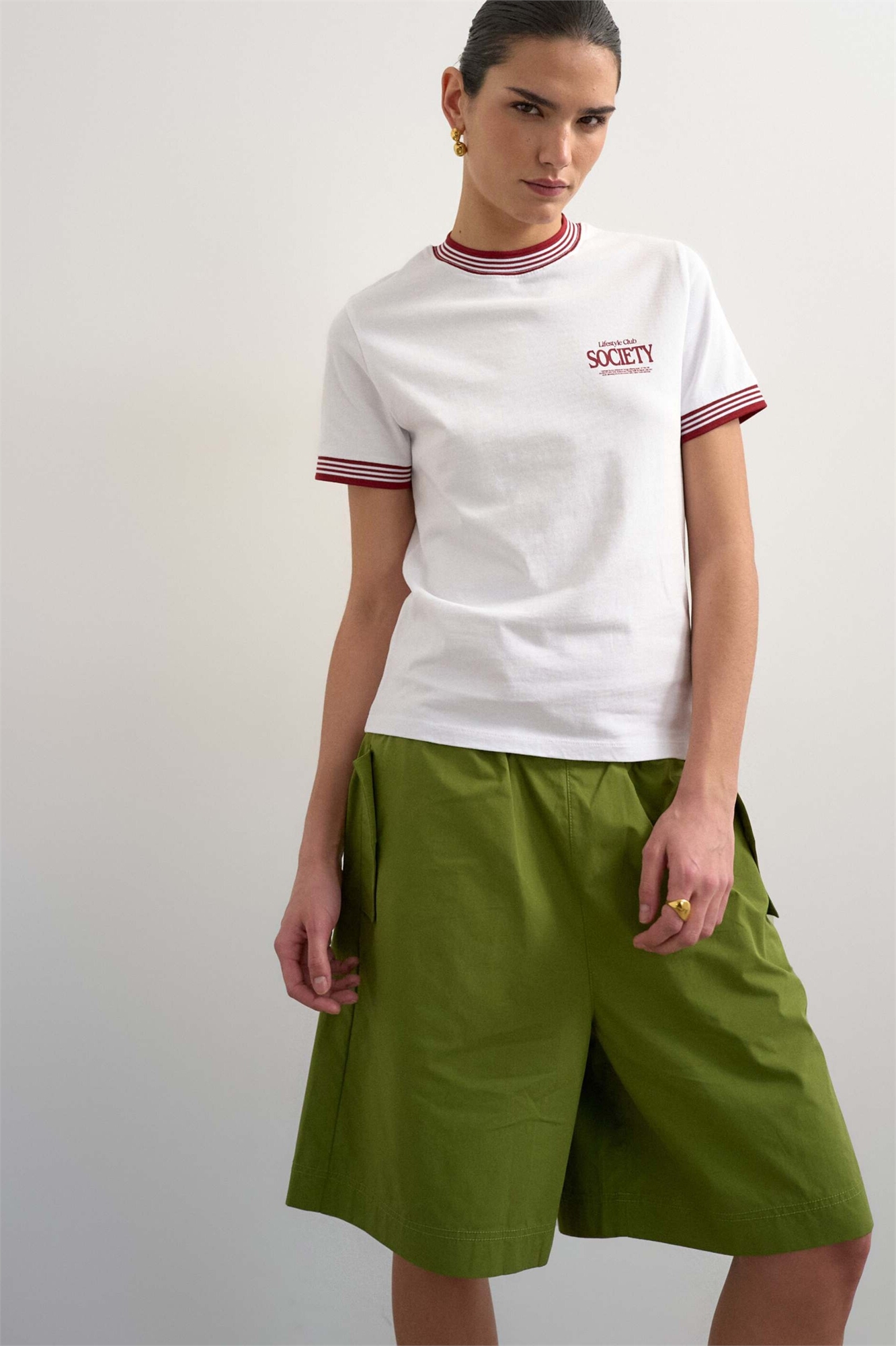 Футболка с принтом «Sport Society» и контрастной окантовкой