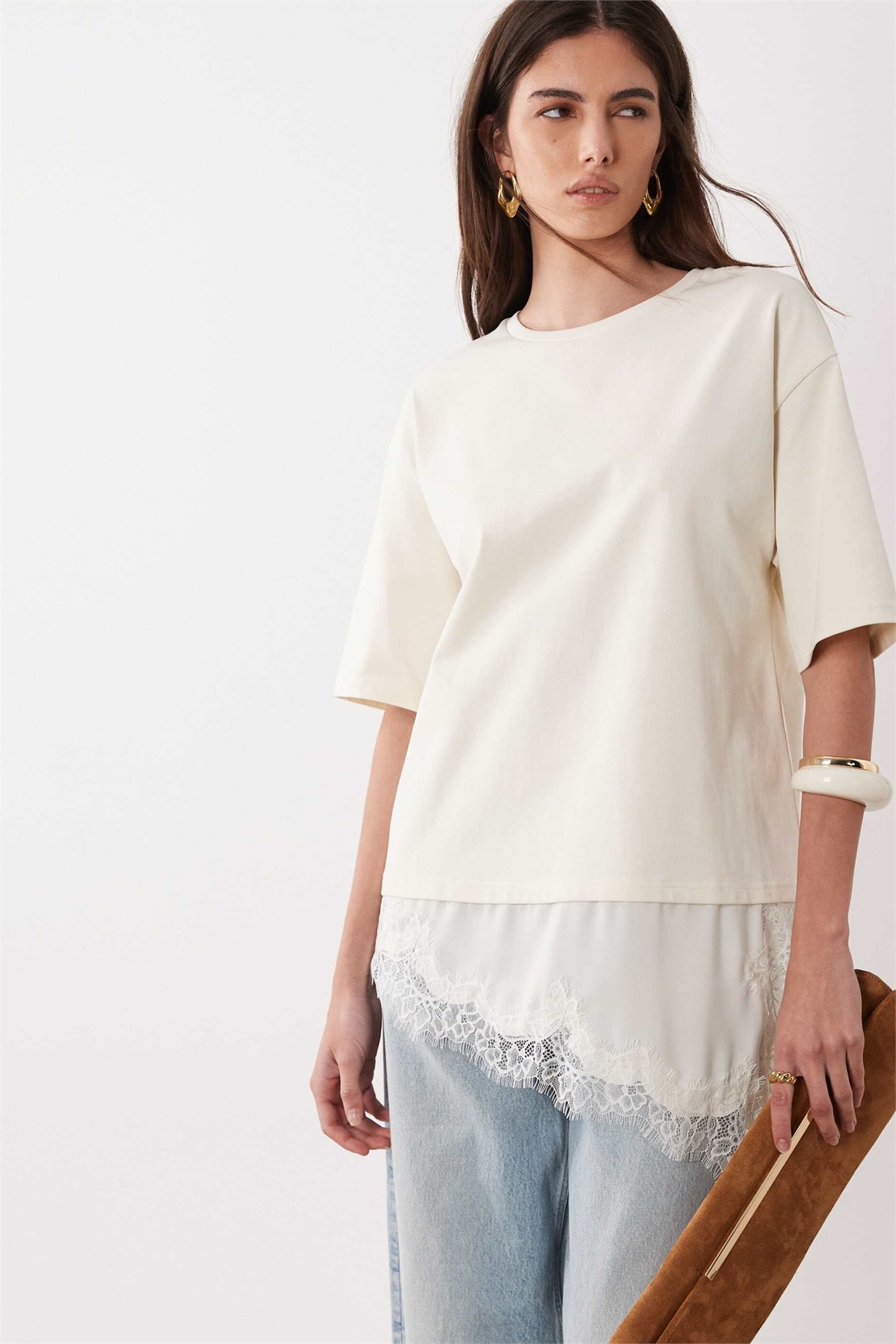 Футболка свободного кроя с кружевными элементами