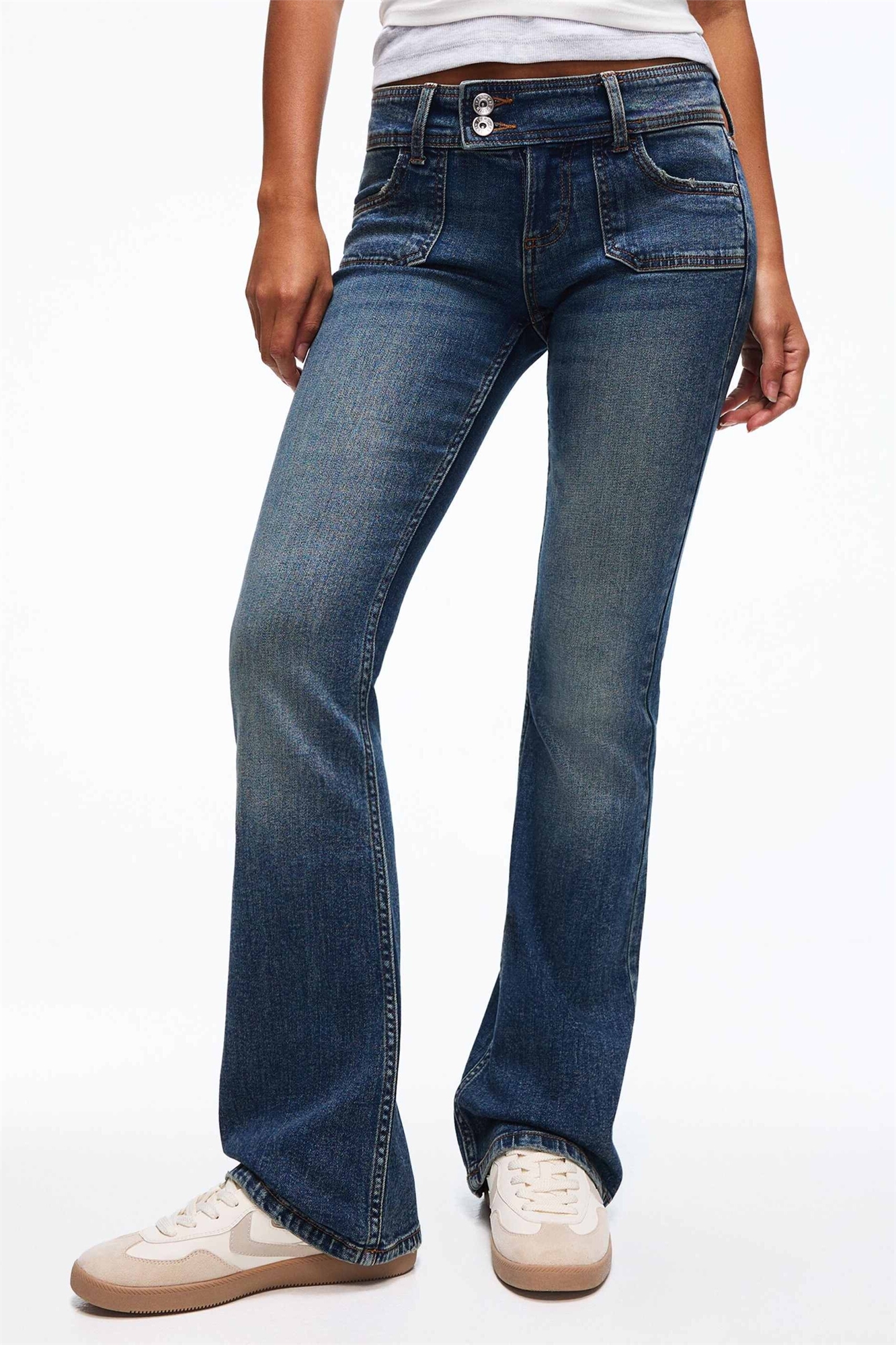 Джинсы с низкой посадкой и расклешенными брючинами