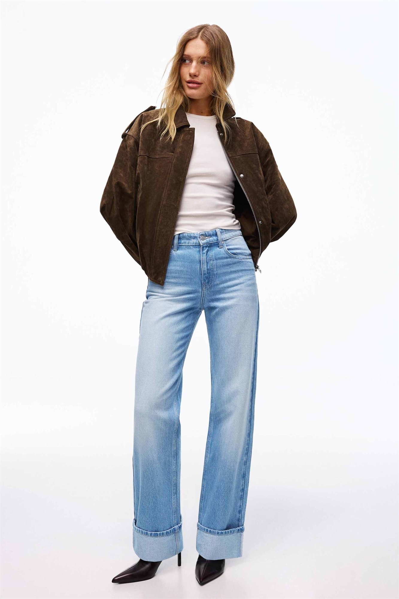 Джинсы с прямыми широкими брючинами и отворотом