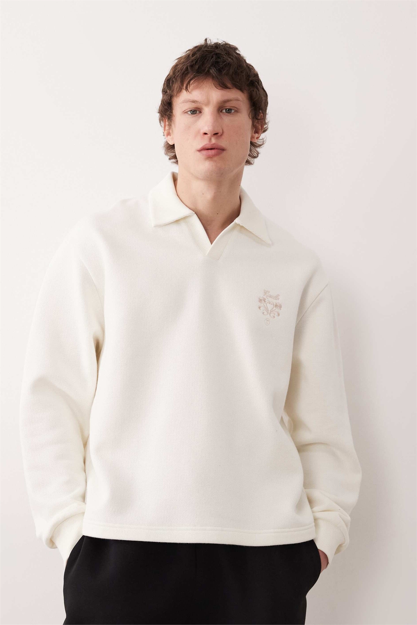 Свитшот-поло свободного кроя с вырезом «ноч» и вышивкой