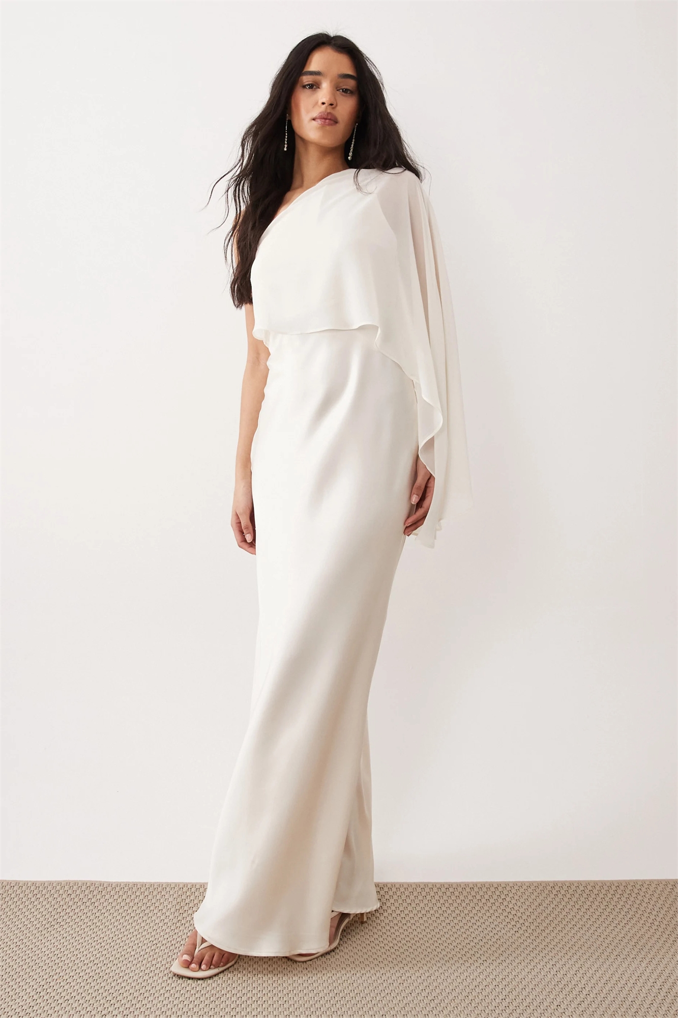 Прозрачное макси-платье на одно плечо с боковым разрезом