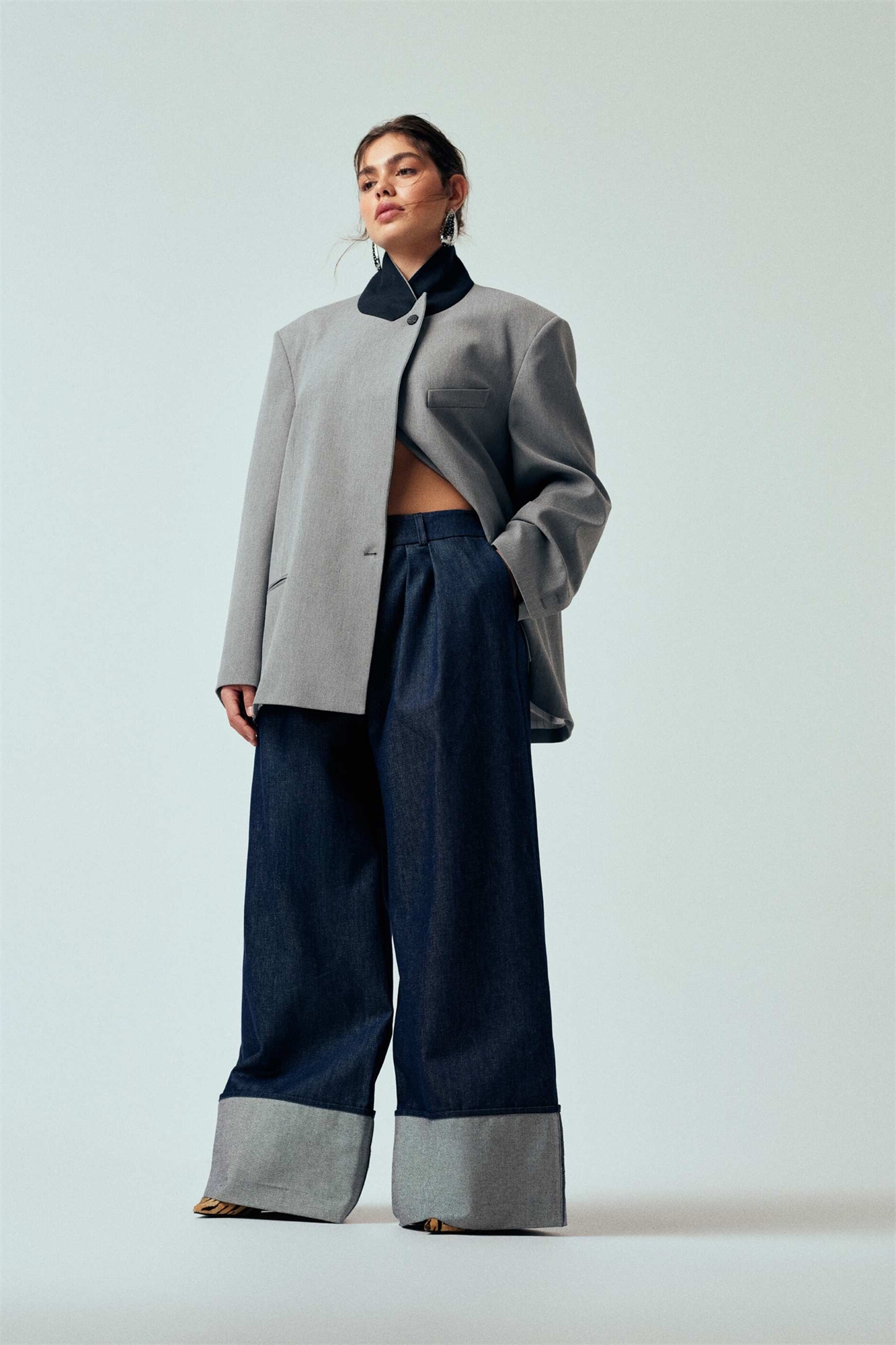 Джинсы с зауженным кроем и широкими штанинами с отворотами