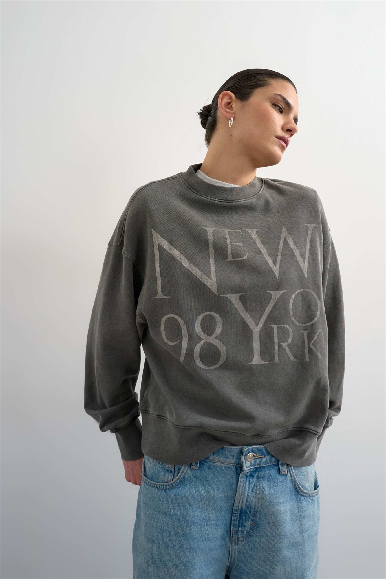 Свободная толстовка с принтом в нью-йоркском стиле