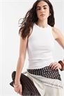 Ребристый джерси: мягкая и эластичная трикотажная ткань. Состав: 93% хлопок, 7% эластан.