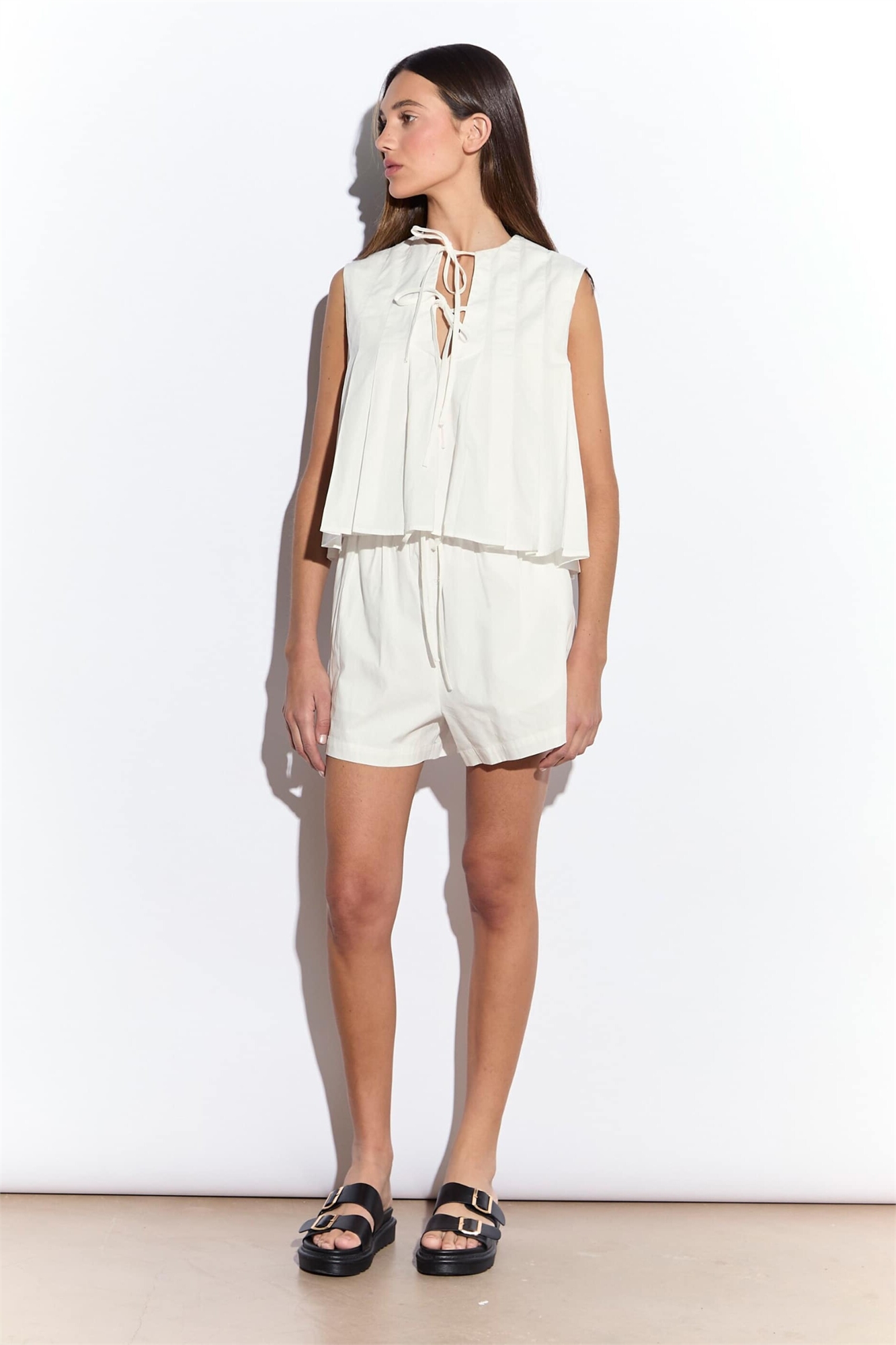 Блузка без рукавов с плиссировкой и завязками спереди
