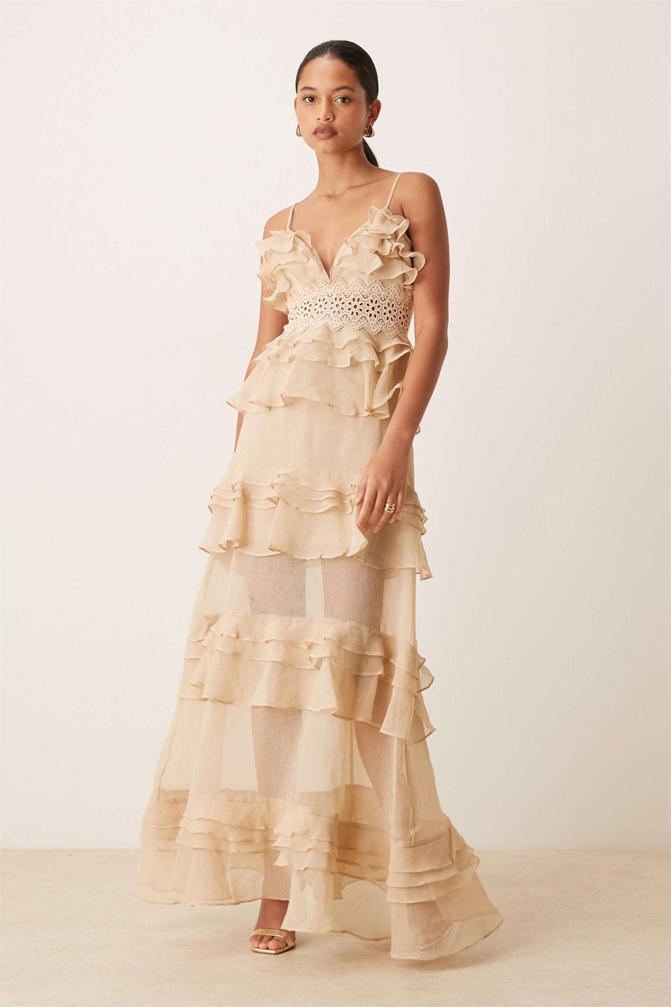 Макси-платье с многослойными оборками