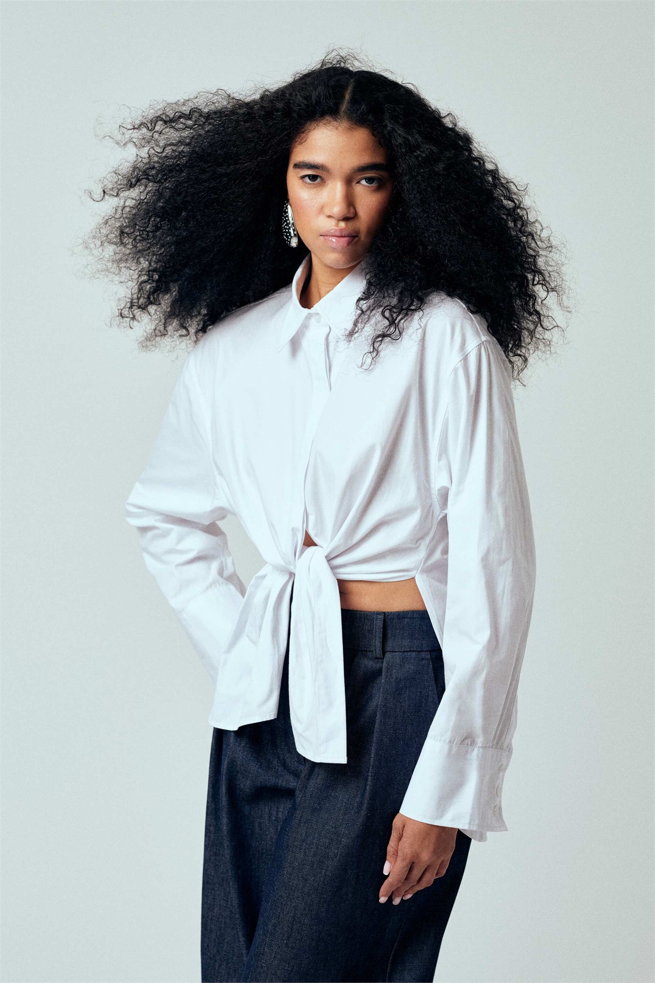 Рубашка свободного кроя с завязками спереди