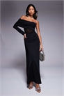 Макси-платье с одним рукавом и вырезом «бардо», с сетчатой вставкой