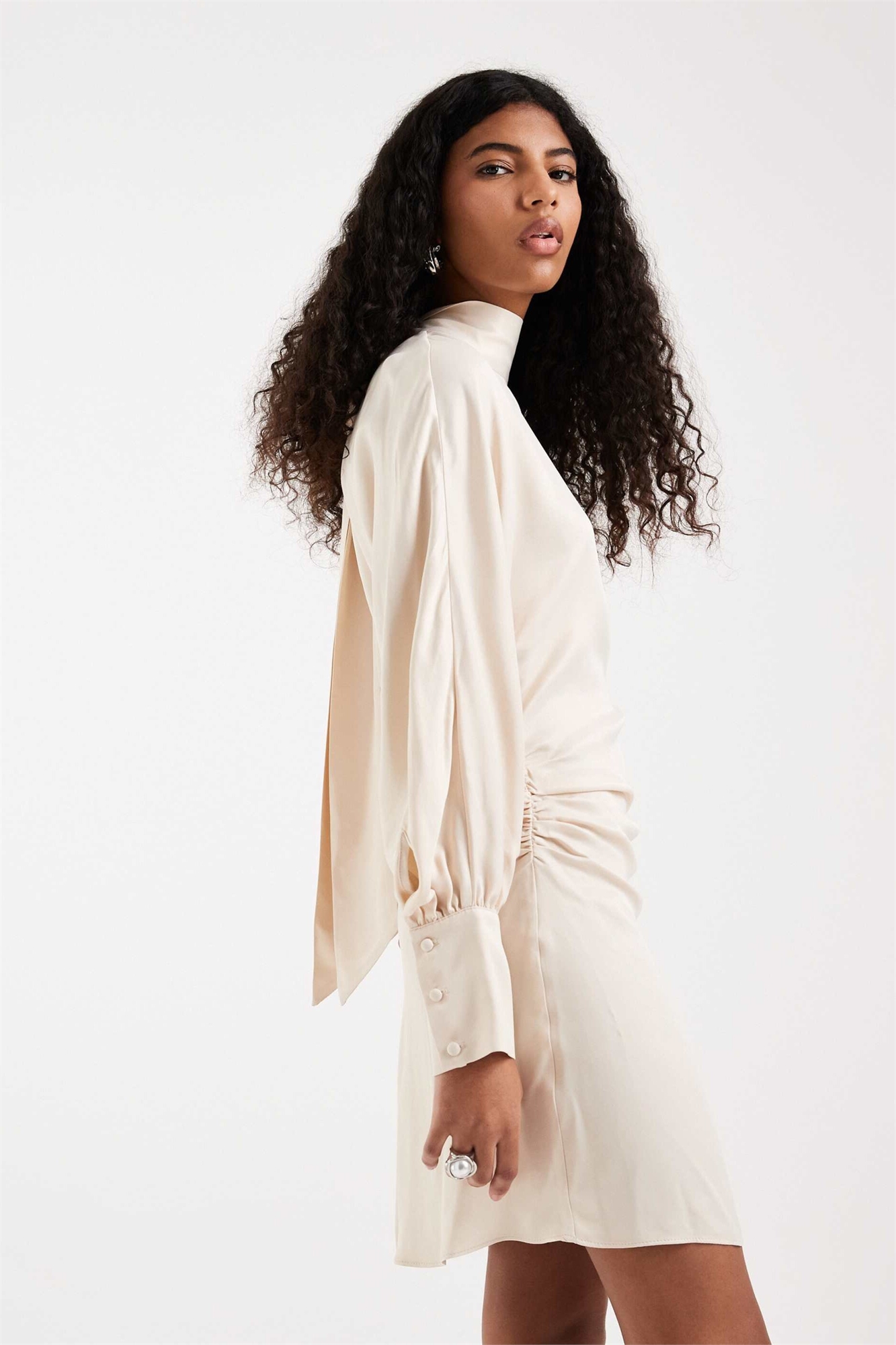 Мини-платье из сатина с рукавами «летучая мышь»