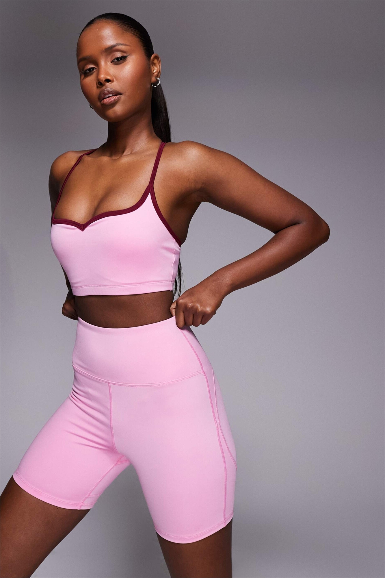 Спортивная одежда: гладкая и эластичная ткань. Состав: 87% полиэстер, 13% эластан.