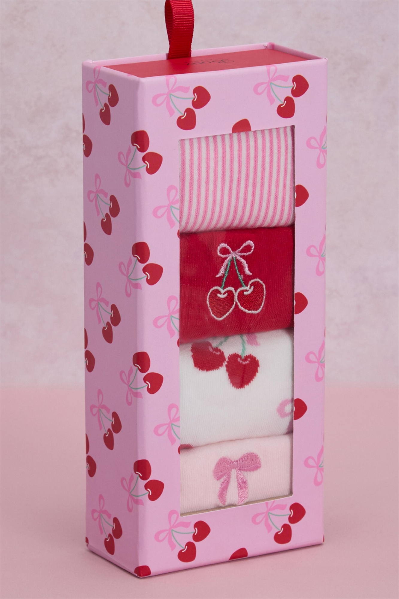 Подарочная коробка с 4 парами носков с вишневым принтом — праздничное белье
