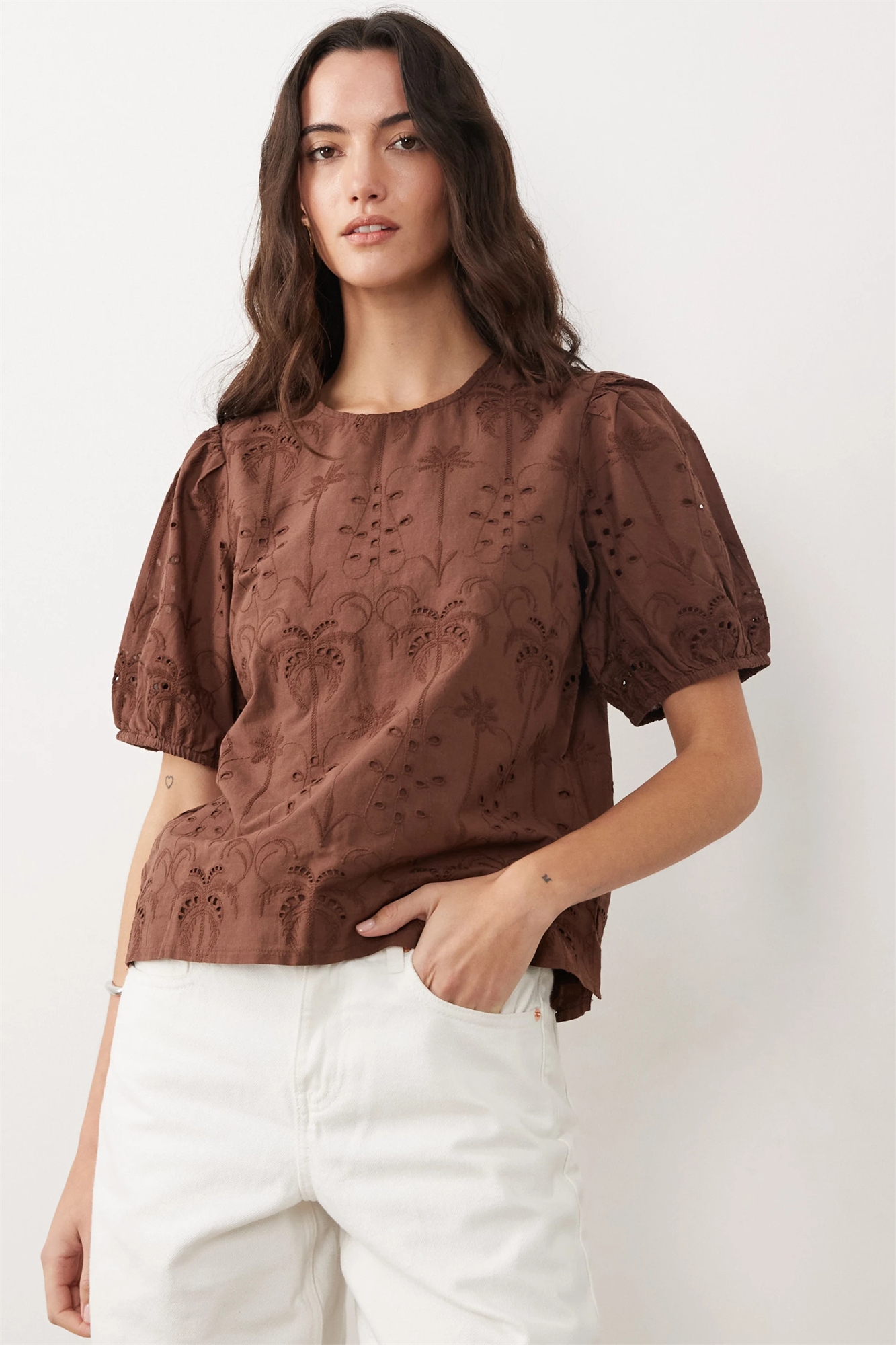 Футболка с ажурным вырезом на груди и рукавами-буф