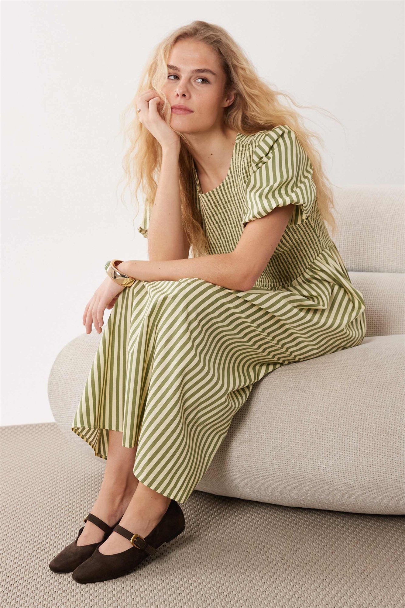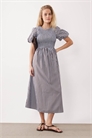 Платье средней длины с полосками и сборками
