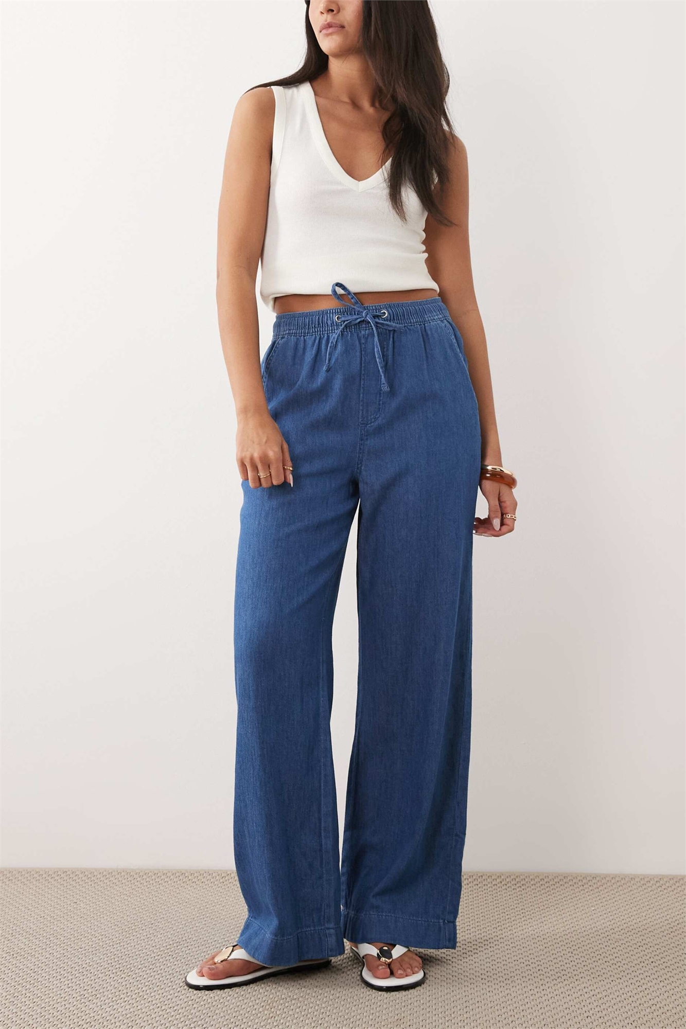 Брюки из джинсовой ткани чамбрей с широкими брючинами