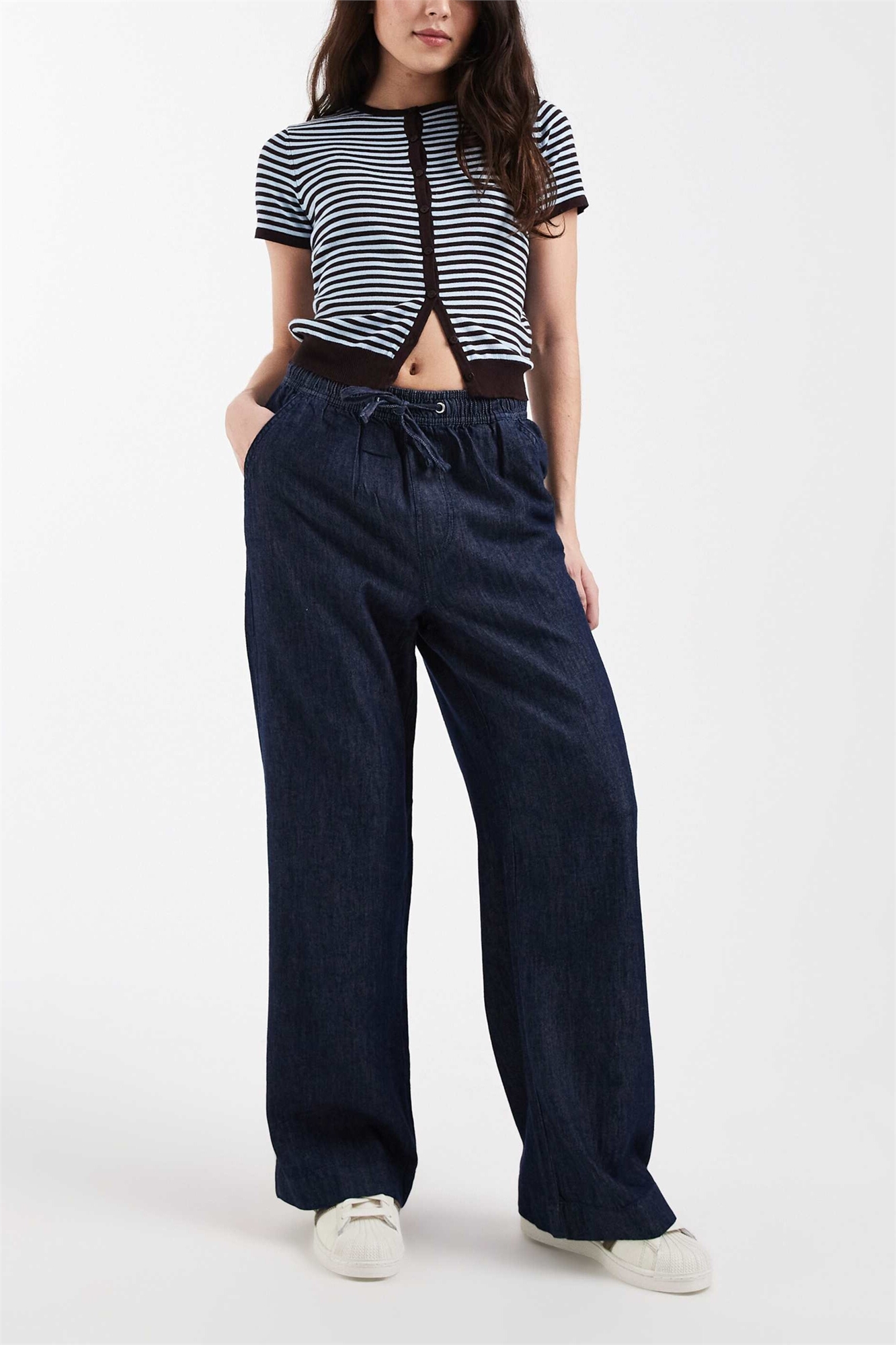 Брюки из джинсовой ткани чамбрей с широкими брючинами