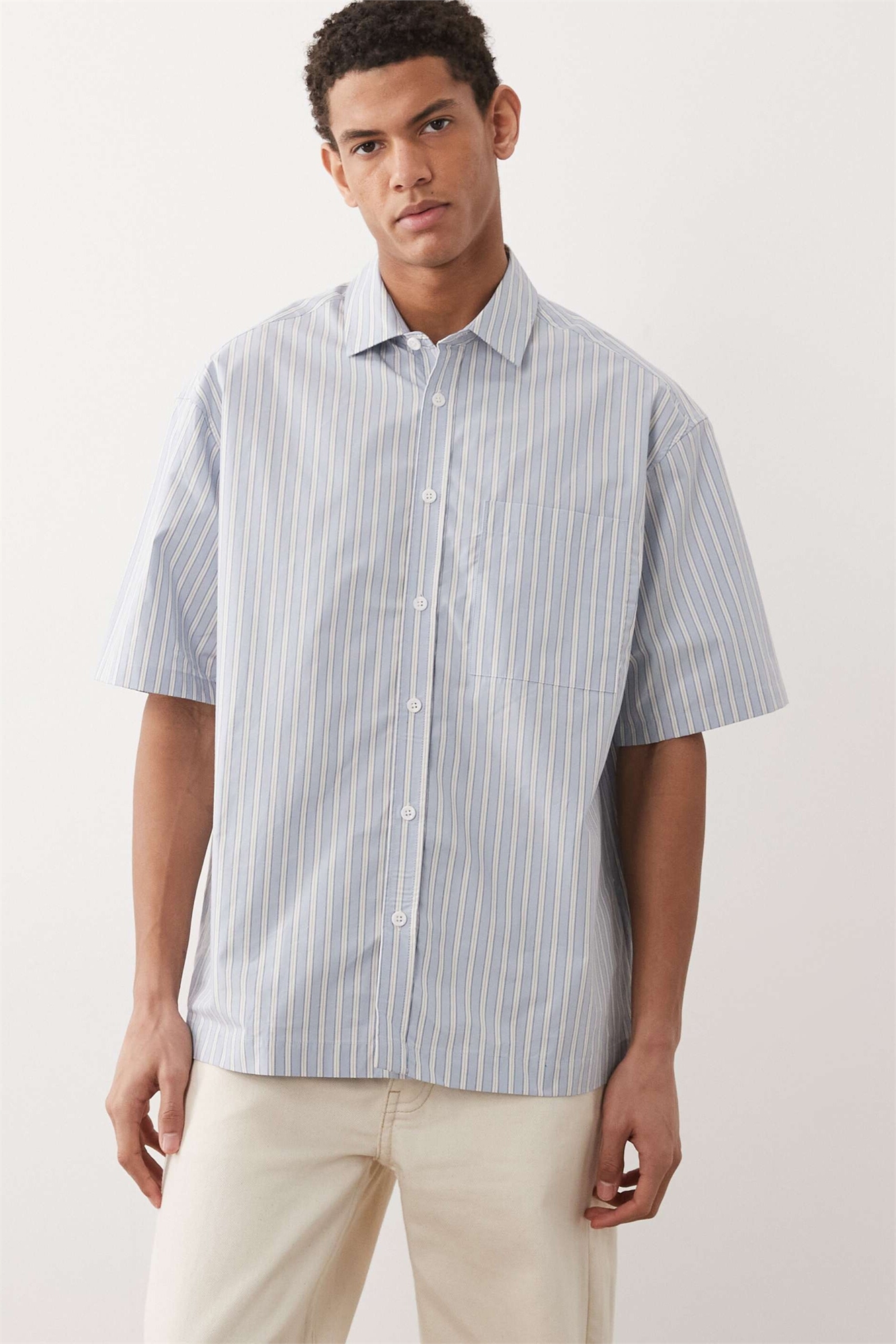 Рубашка свободного кроя в полоску с нагрудным карманом
