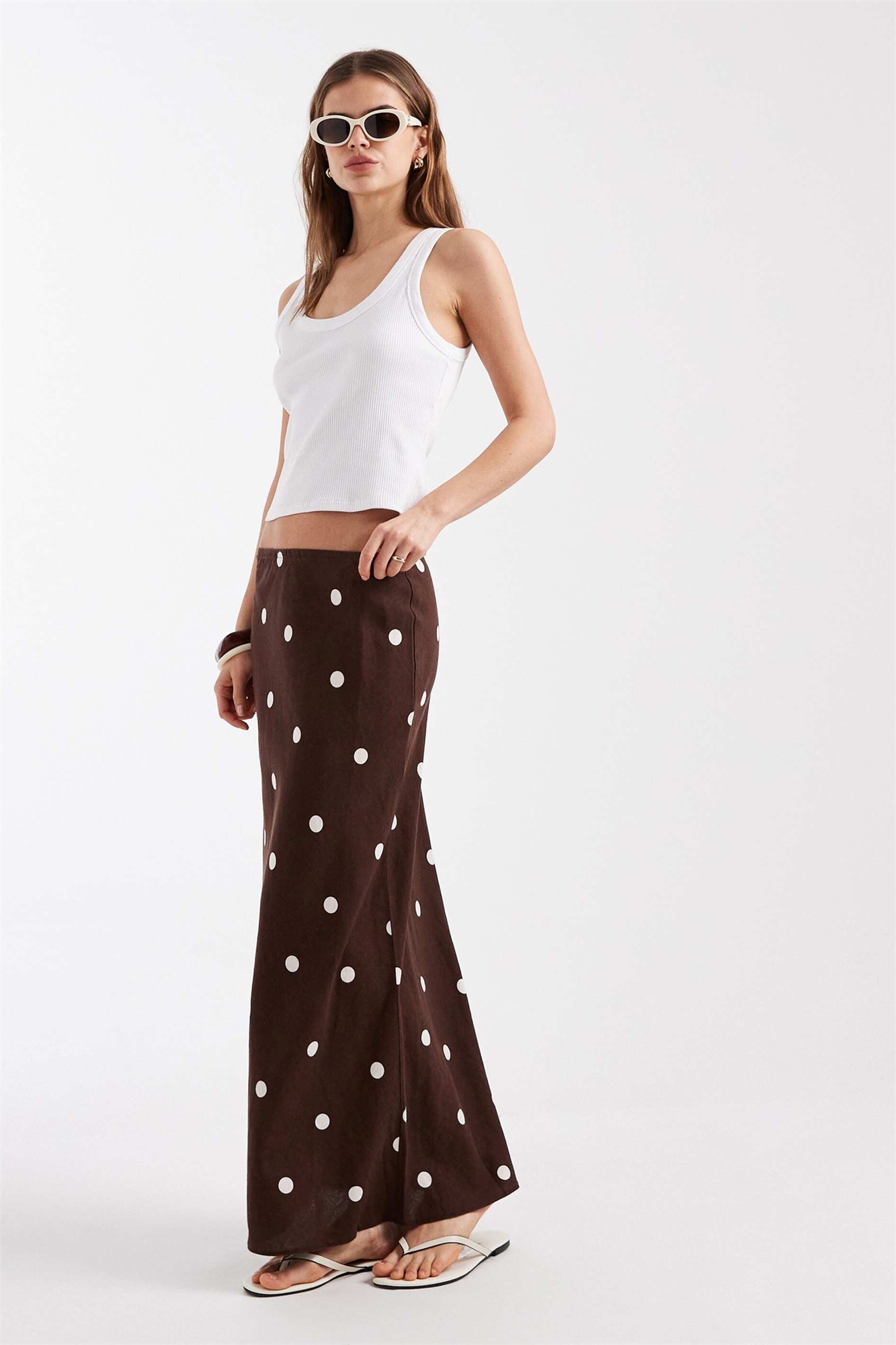 Юбка средней длины из смешанного льна в горошек
