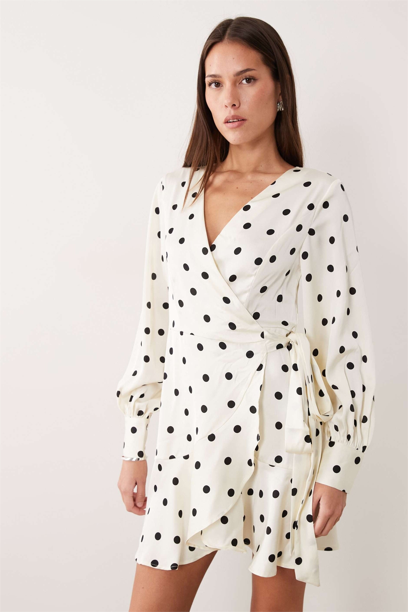 Мини-платье с длинными рукавами из атласа с запахом