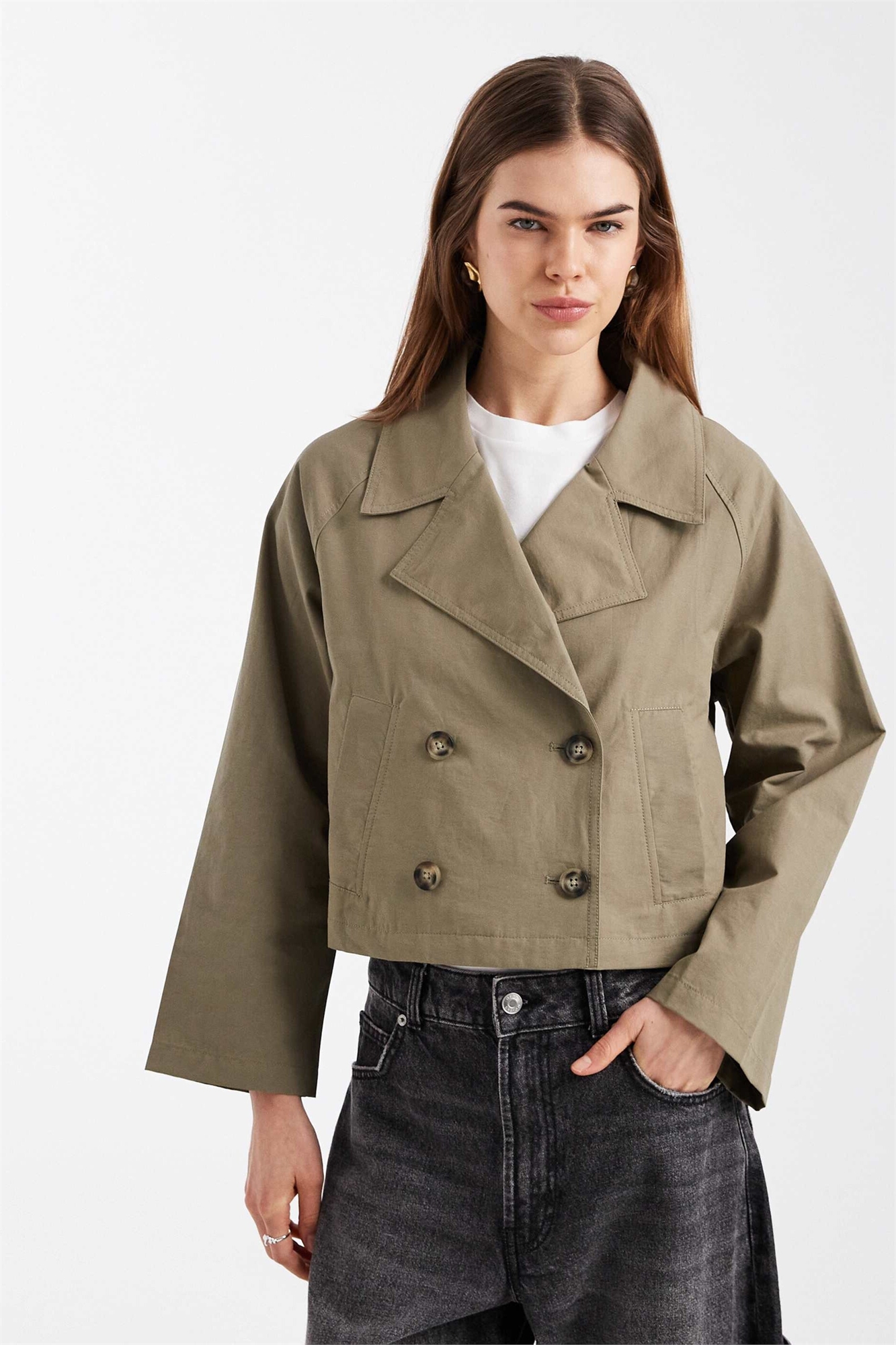 Укороченный тренч из ткани с высоким содержанием хлопка для подростков