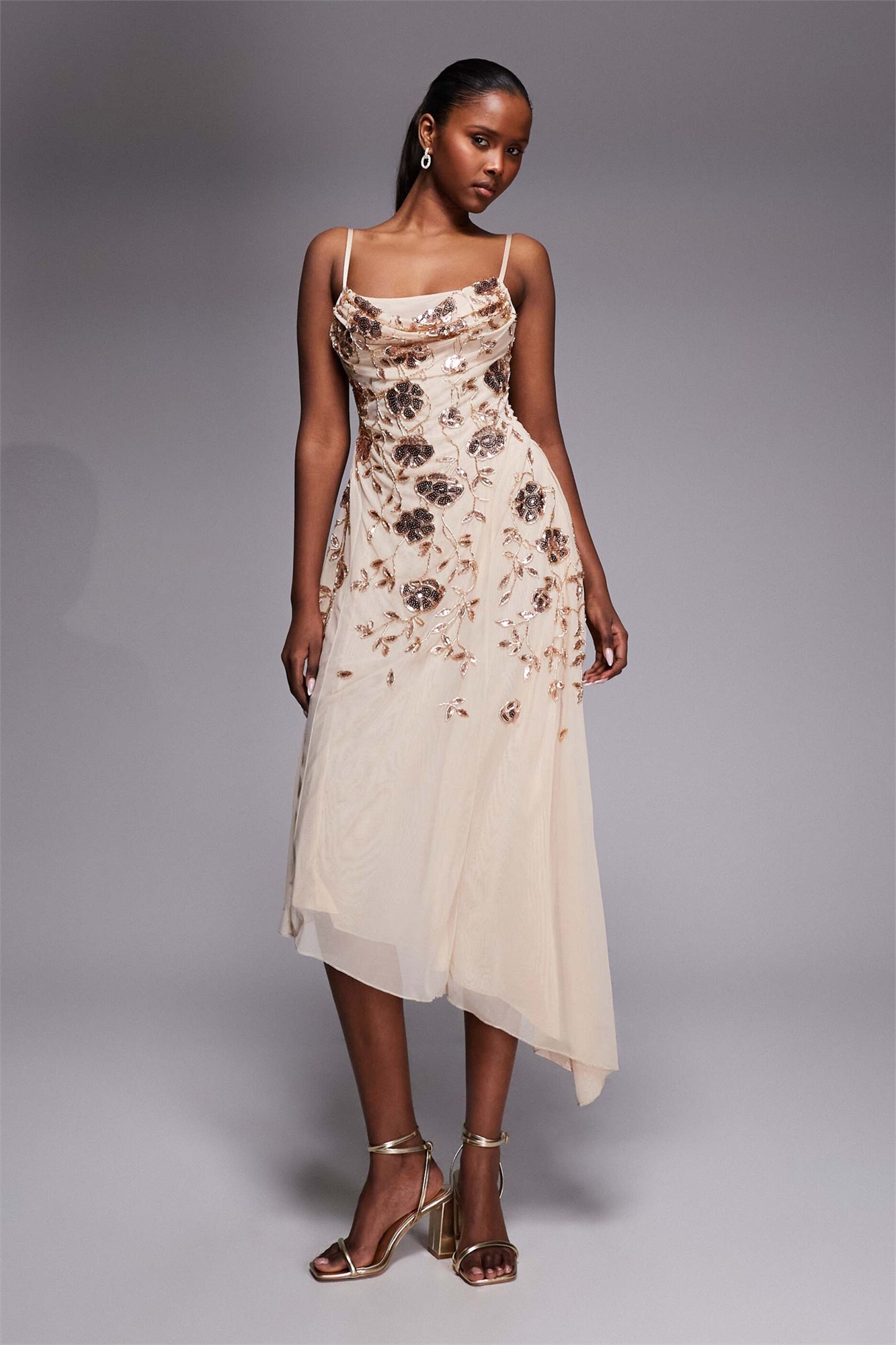 Асимметричное платье средней длины с цветочным декором