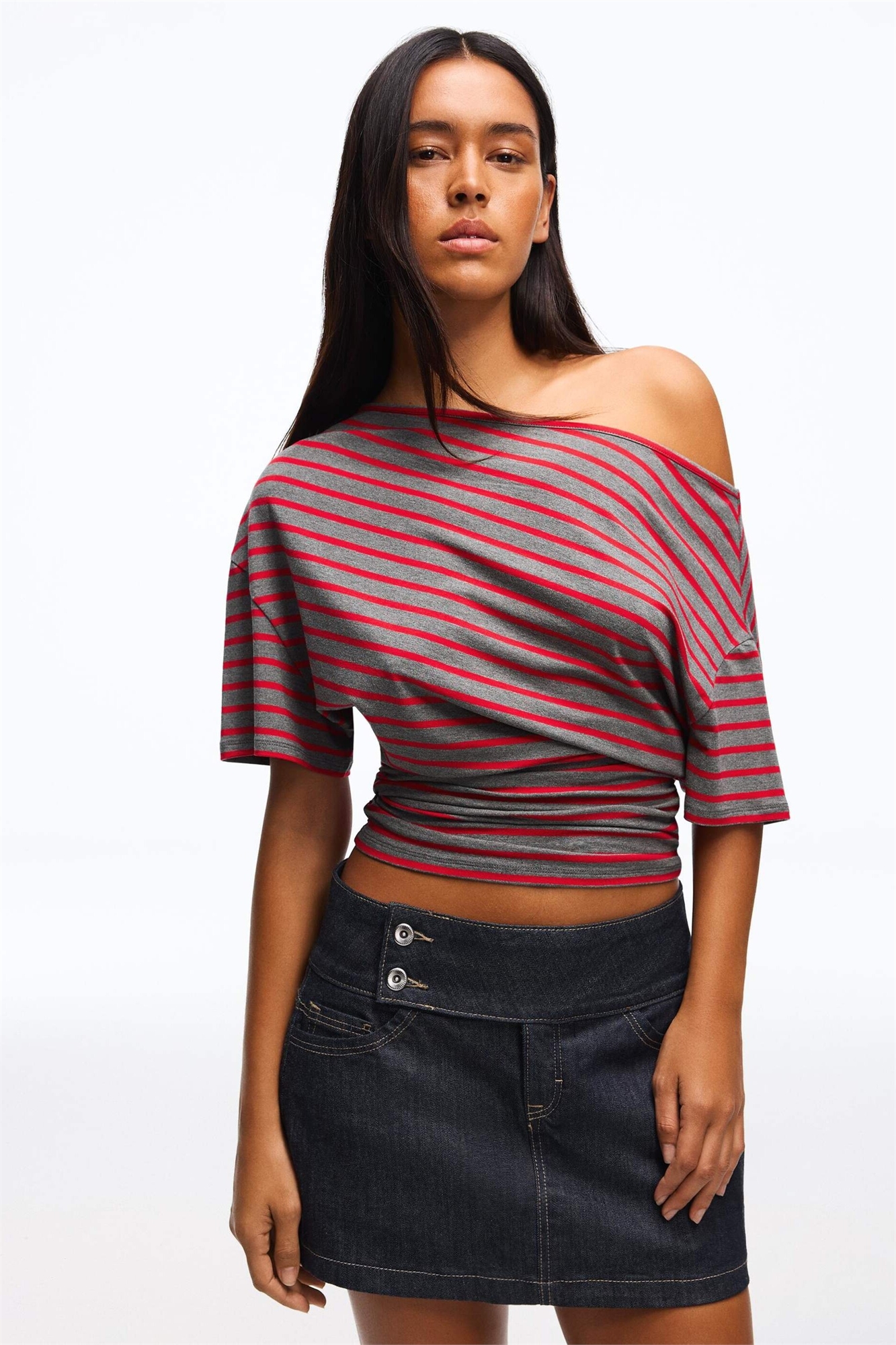 Футболка с коротким рукавом и асимметричным принтом