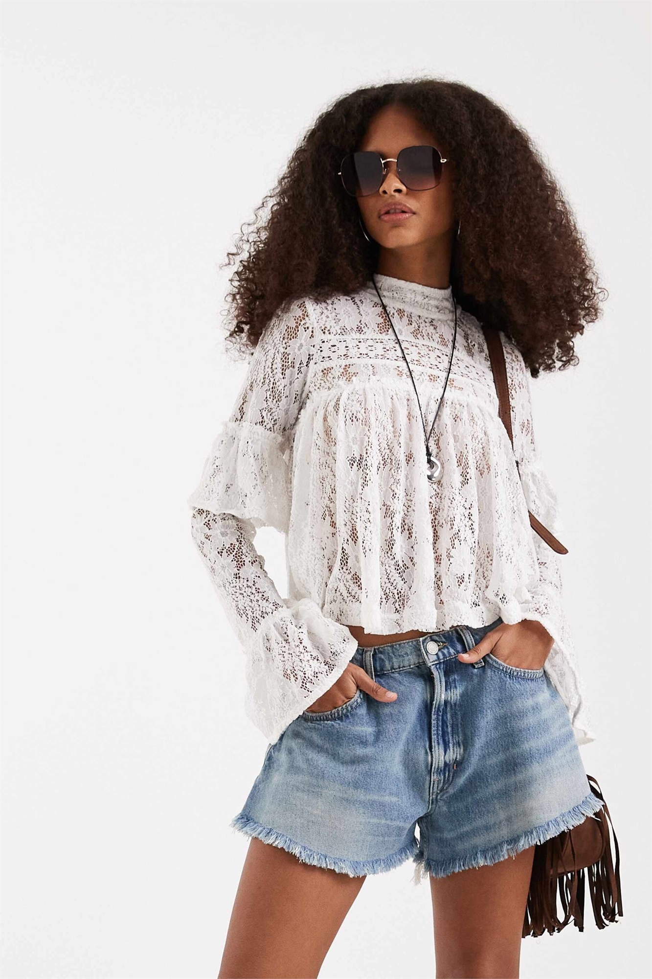 Блузка в стиле бохо с рюшами и длинными рукавами из кружева