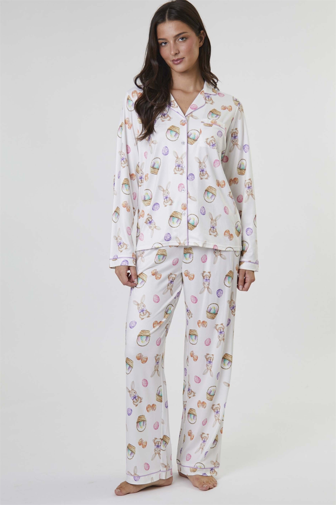 Комплект из джерси с принтом в виде кроликов: футболка с длинным рукавом и брюки