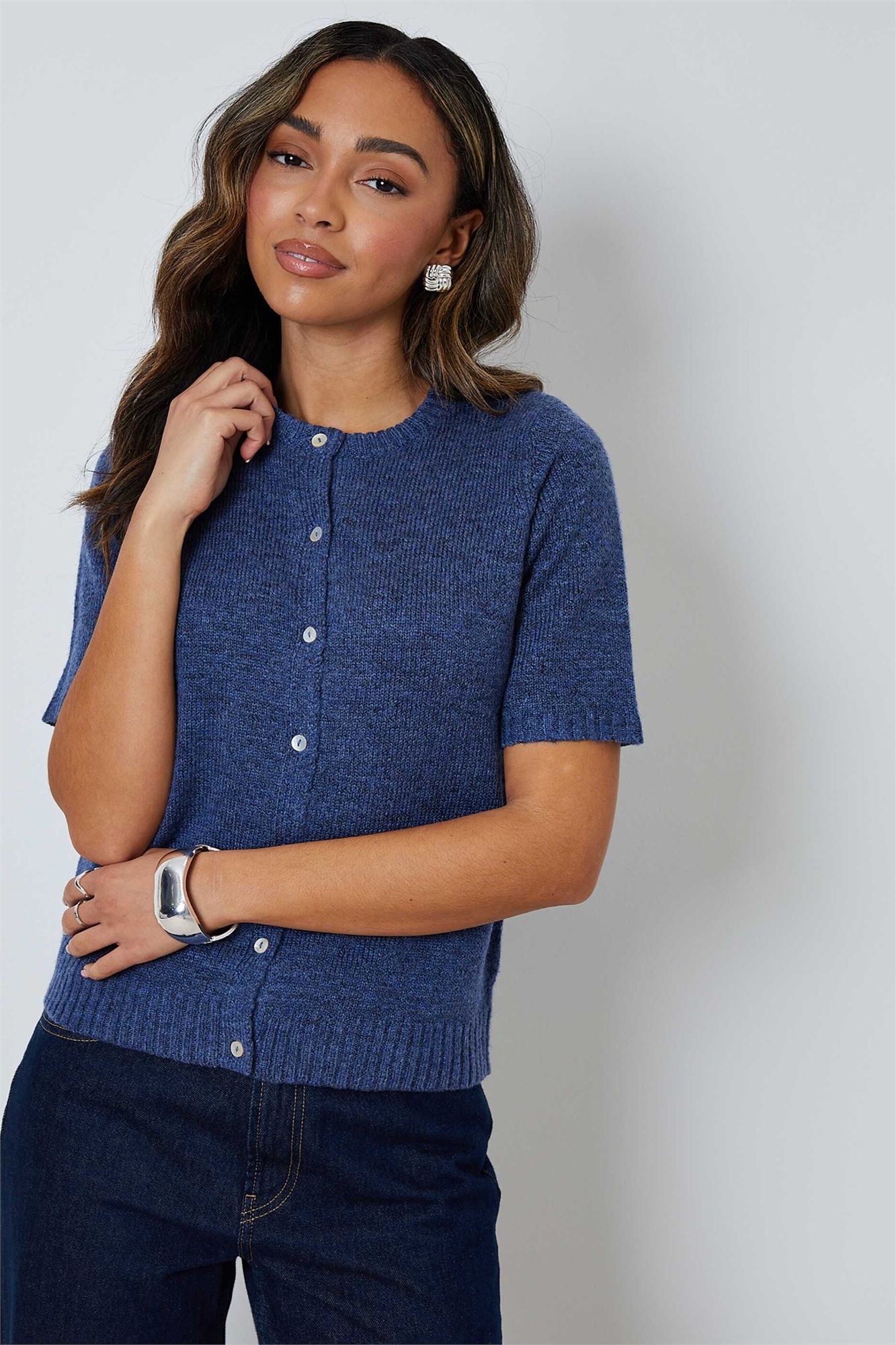 Вязаный кардиган с круглым вырезом и короткими рукавами