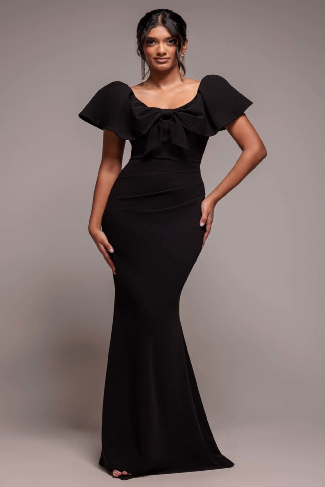 Макси-платье с рукавами-крылышками и завязками спереди