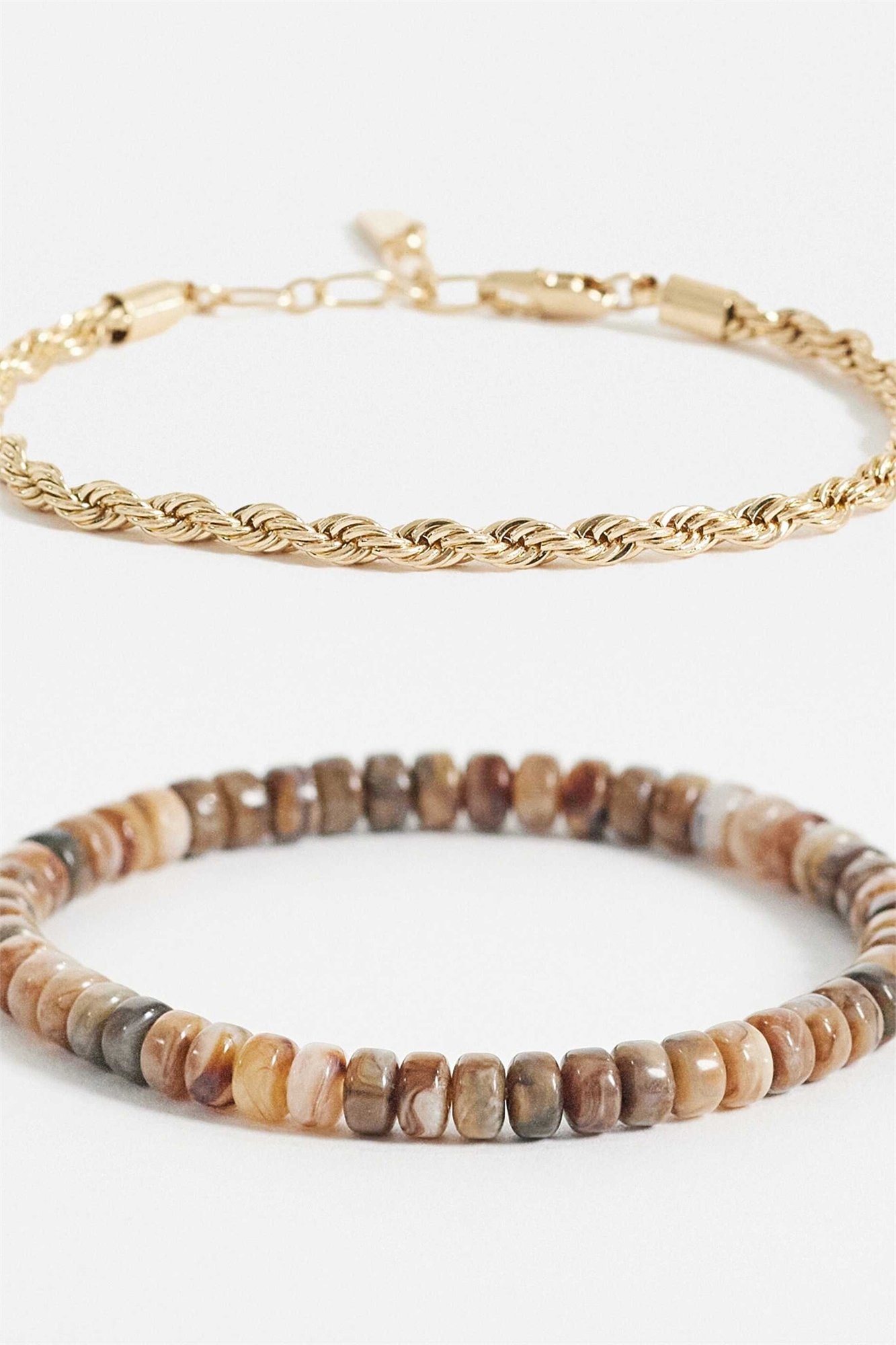 Набор из 2 браслетов с круглыми бусинами и плетеной цепочкой