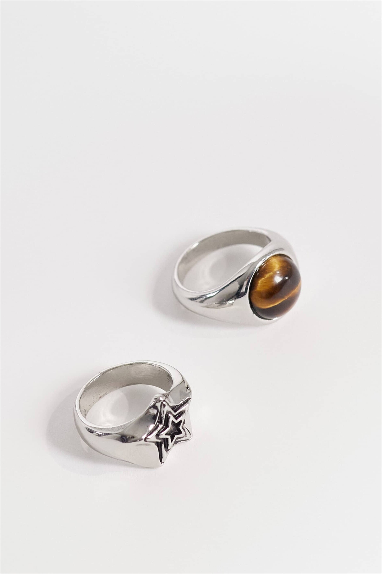 Набор из 2 полудрагоценных колец с тигровым глазом и знаком зодиака