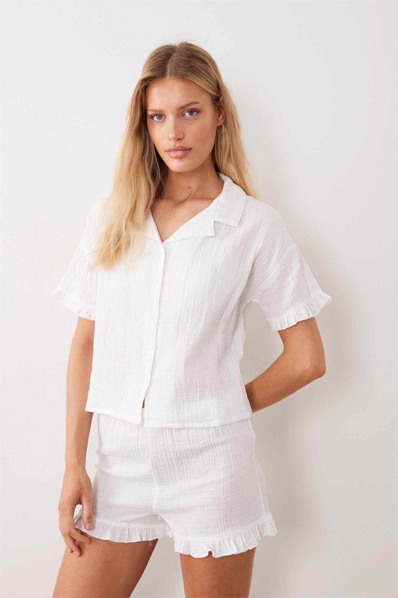 Пижамный комплект из двойной ткани с рубашкой с короткими рукавами и шортами