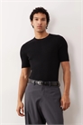 Фигурно облегающая трикотажная футболка с круглым вырезом из смесовой хлопковой ткани