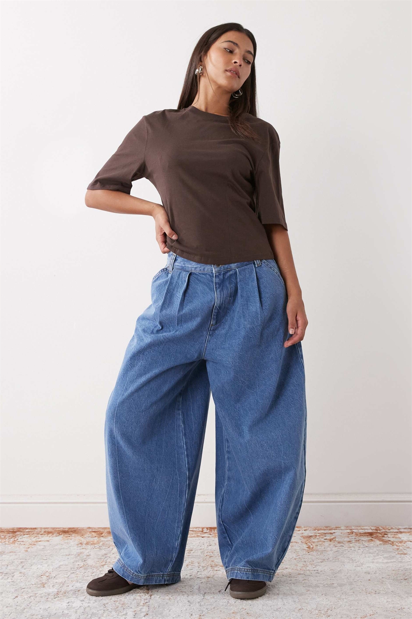 Неэластичный деним: средне-синий оттенок Основной материал: 100% хлопок.