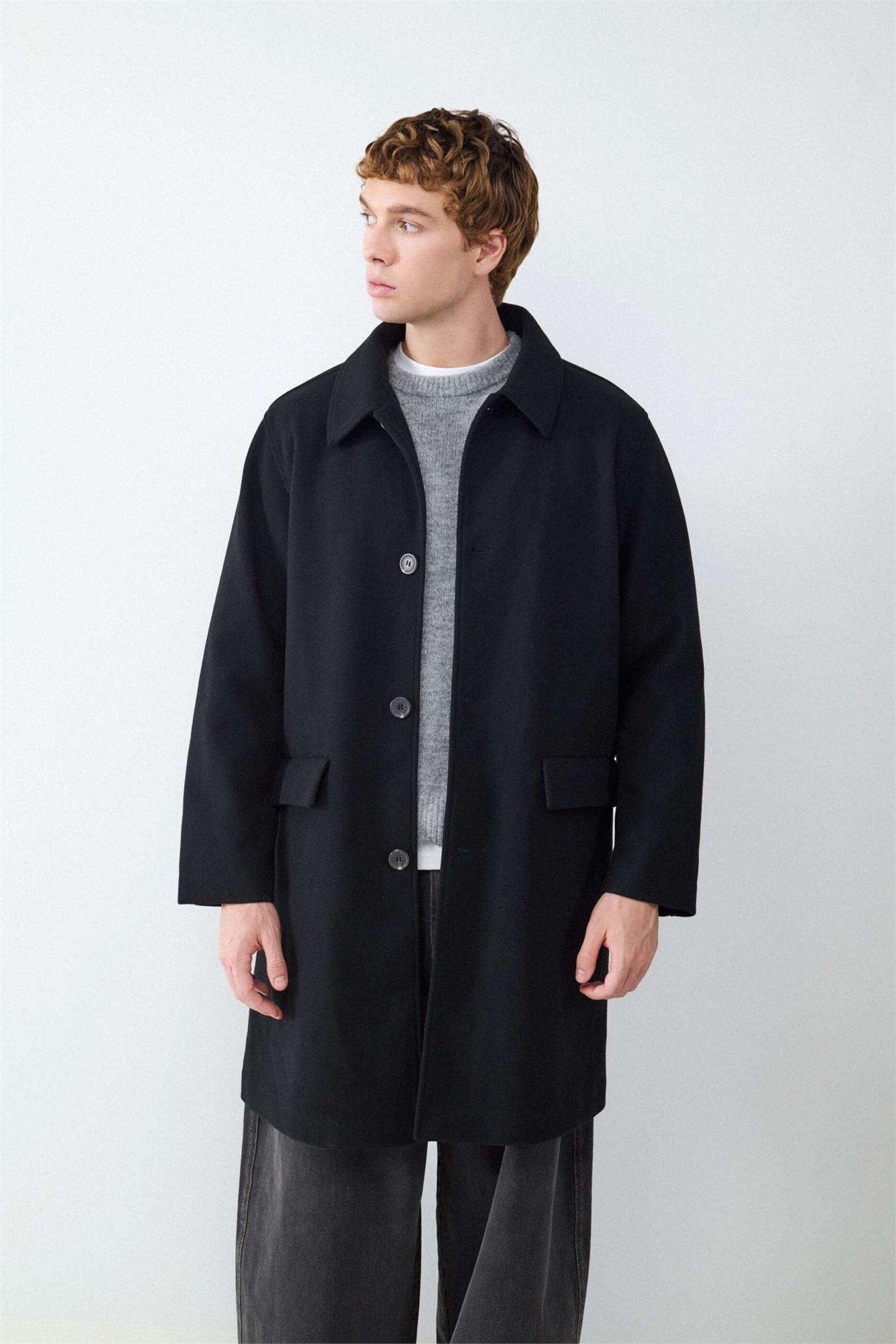 Длинное пальто черного цвета