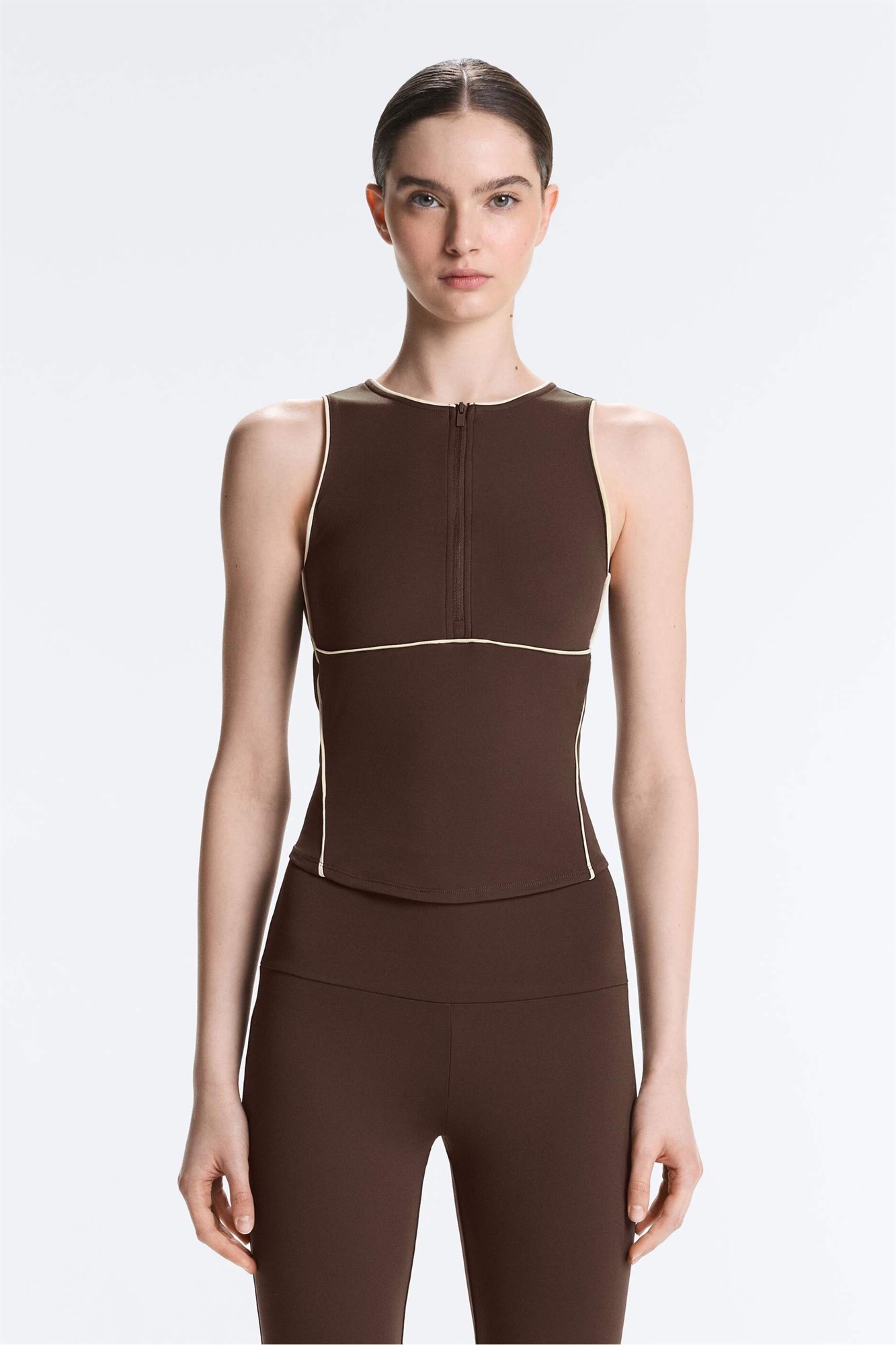 Спортивная одежда: гладкая и эластичная ткань. Используется технология Comfortlux. Дышащая и быстросохнущая ткань, которая помогает сохранять прохладу, сухость и комфорт. Основной состав: 88% полиэстер, 12% эластан.