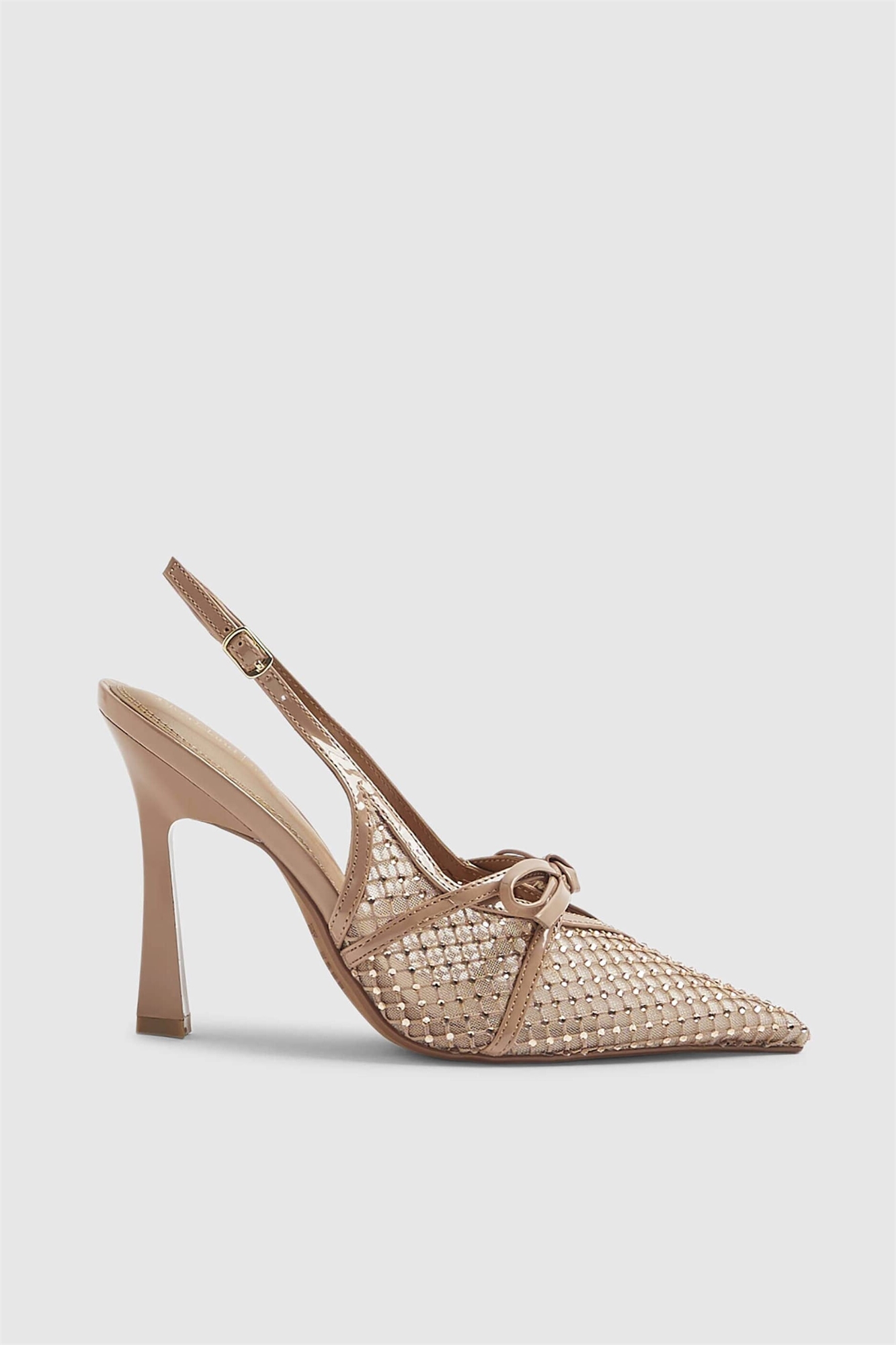 Туфли на каблуке с сетчатым бантиком и открытой пяткой