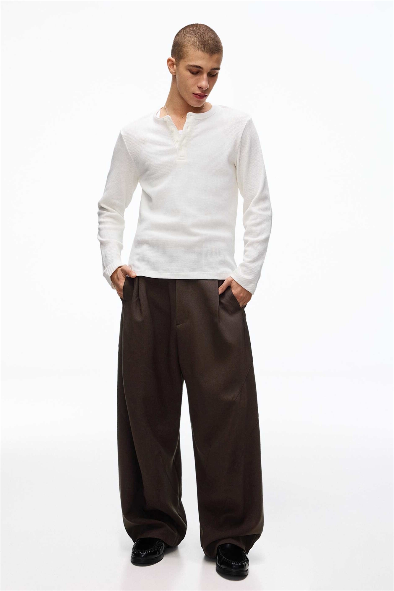 Брюки приталенного кроя с расклешенными штанинами и вырезами