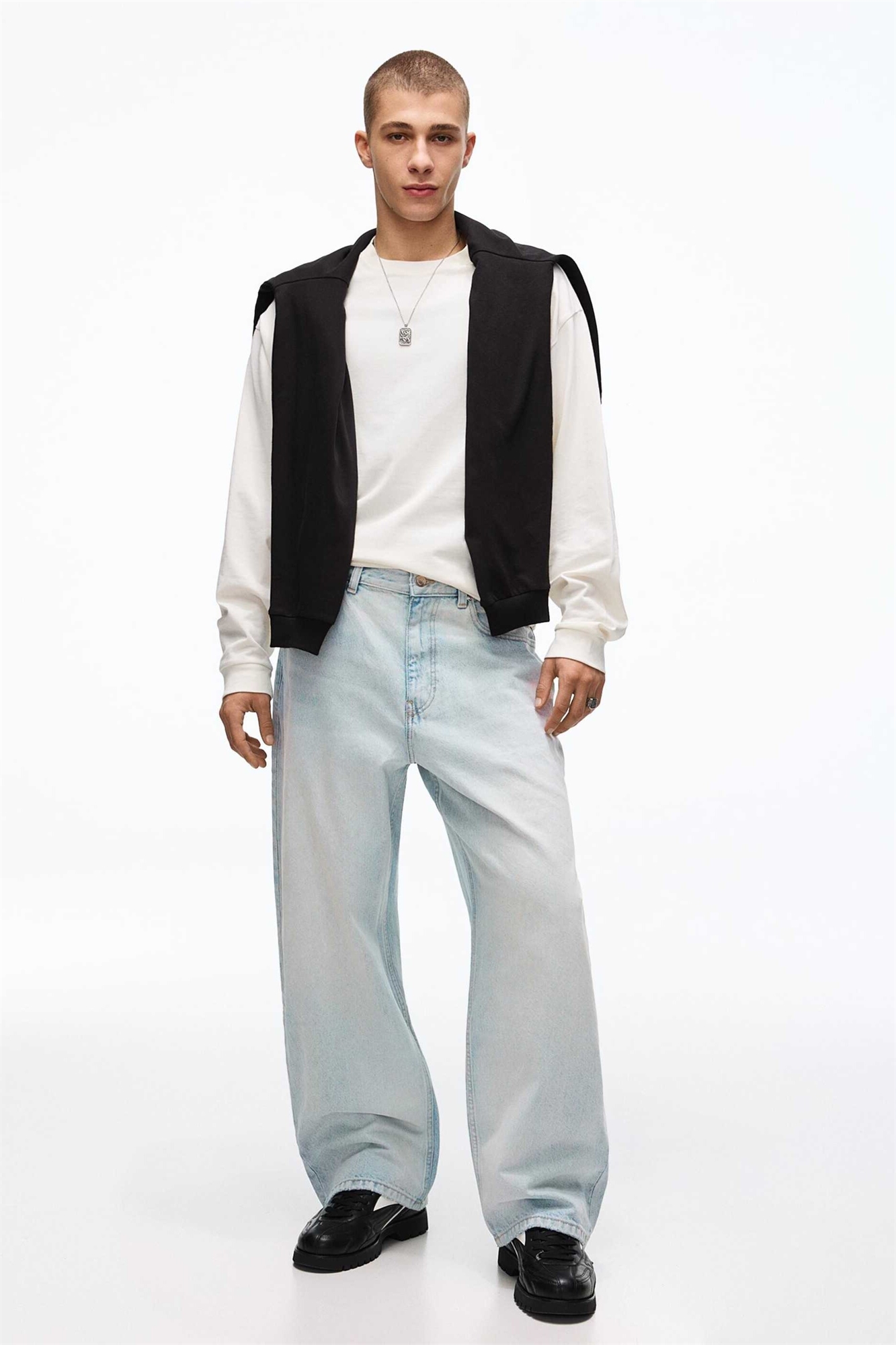 Неэластичный деним: синяя стирка Основной материал: 100% хлопок.
