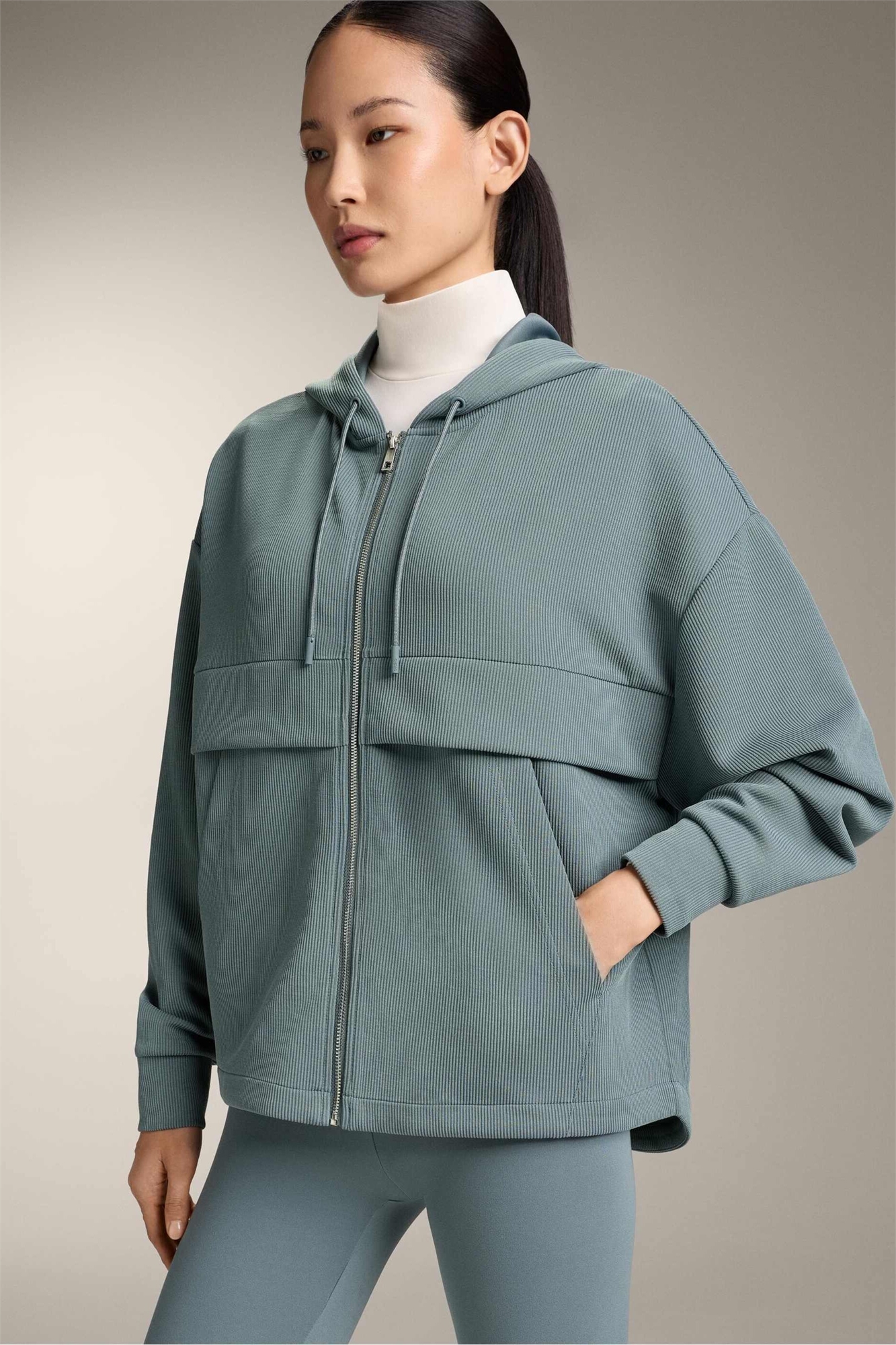 Свитшот на молнии с ребристой фактурой из мягкого модала