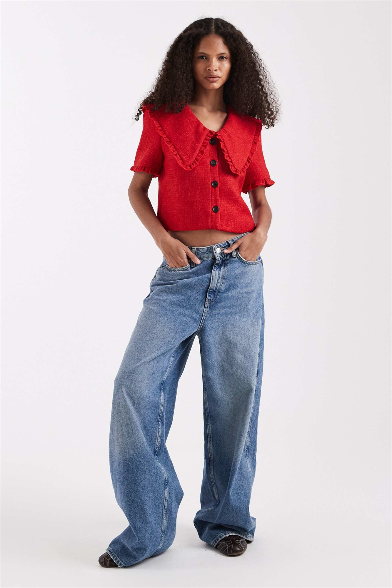 Топ из букле с объемным воротником