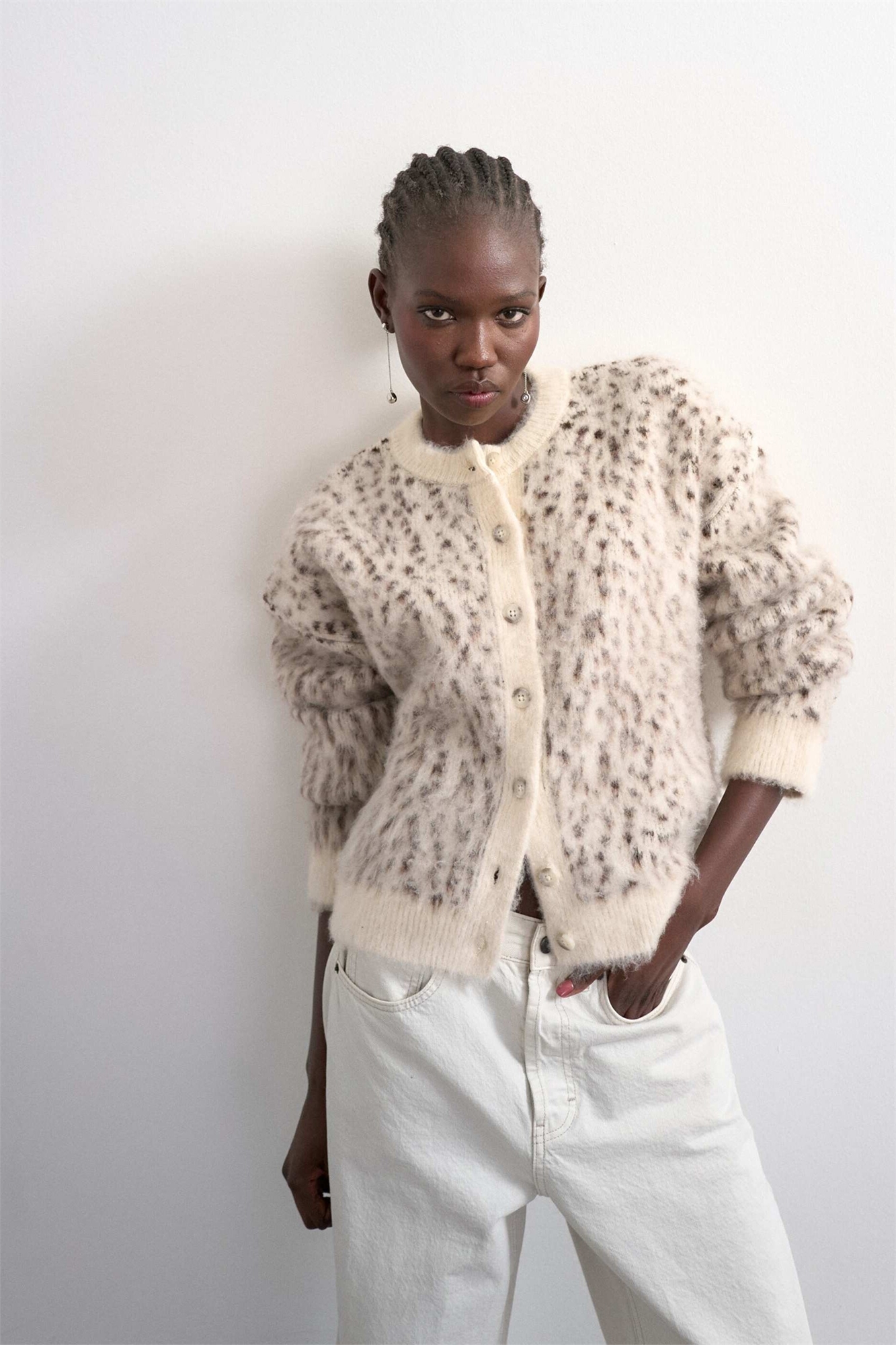 Вязаный кардиган с принтом в виде животных