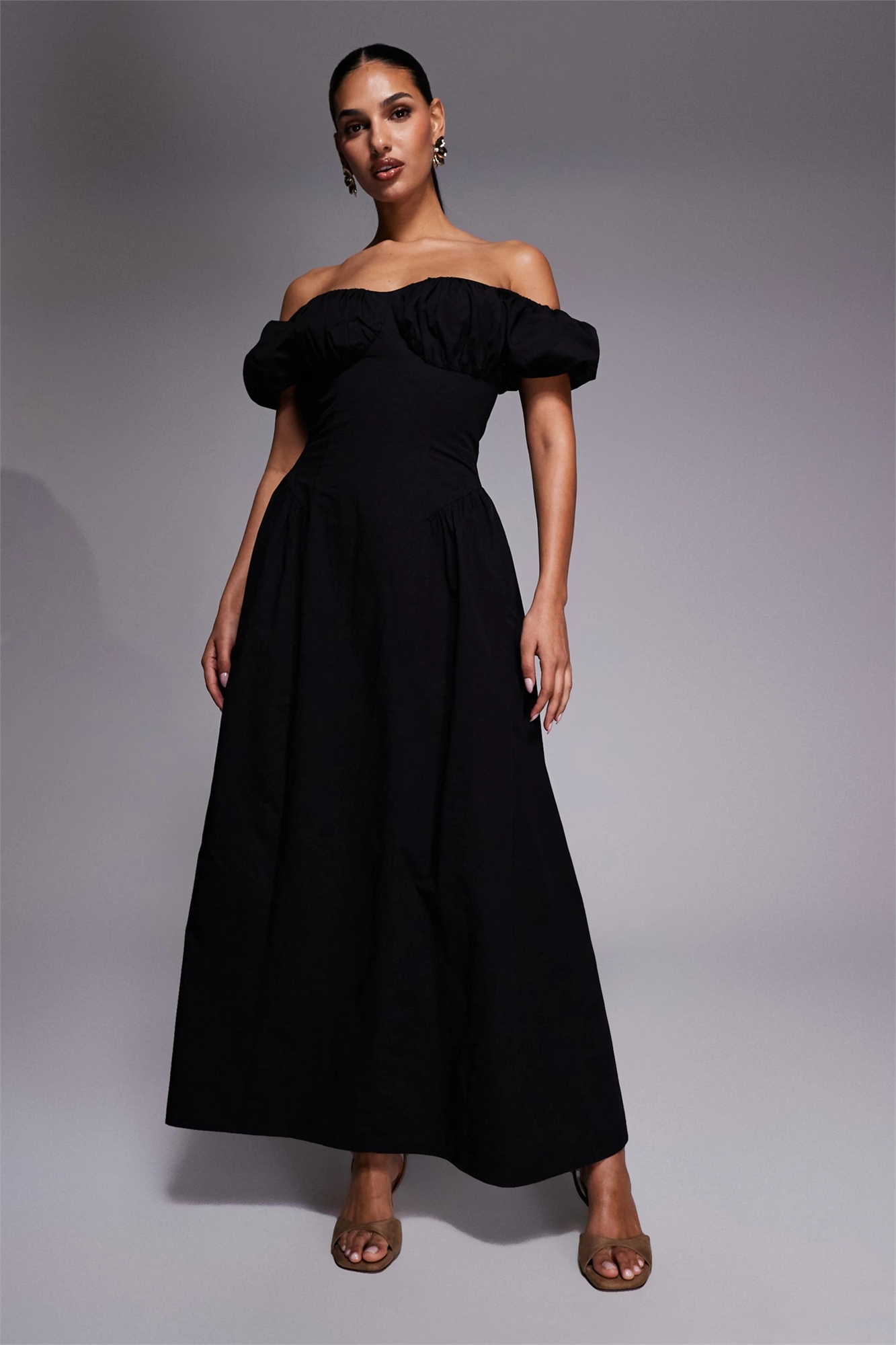 Эксклюзивное макси-платье из хлопка с рукавами «буф» в стиле «милкмейд» и складками на бедрах